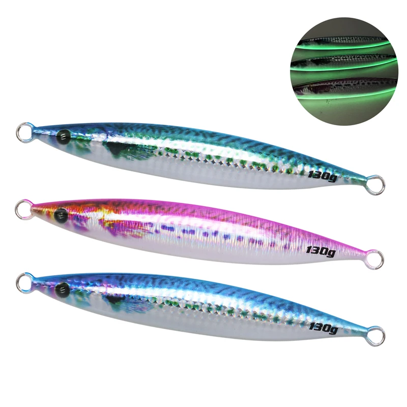 Plantilla de Metal para pesca en el mar, cebo de lápiz luminoso que se hunde, sardina Artificial, simulación de barco, aparejos de pesca Fakebait, 130/160G