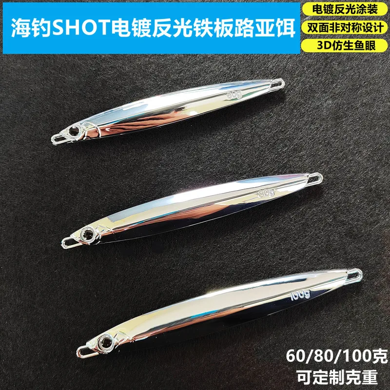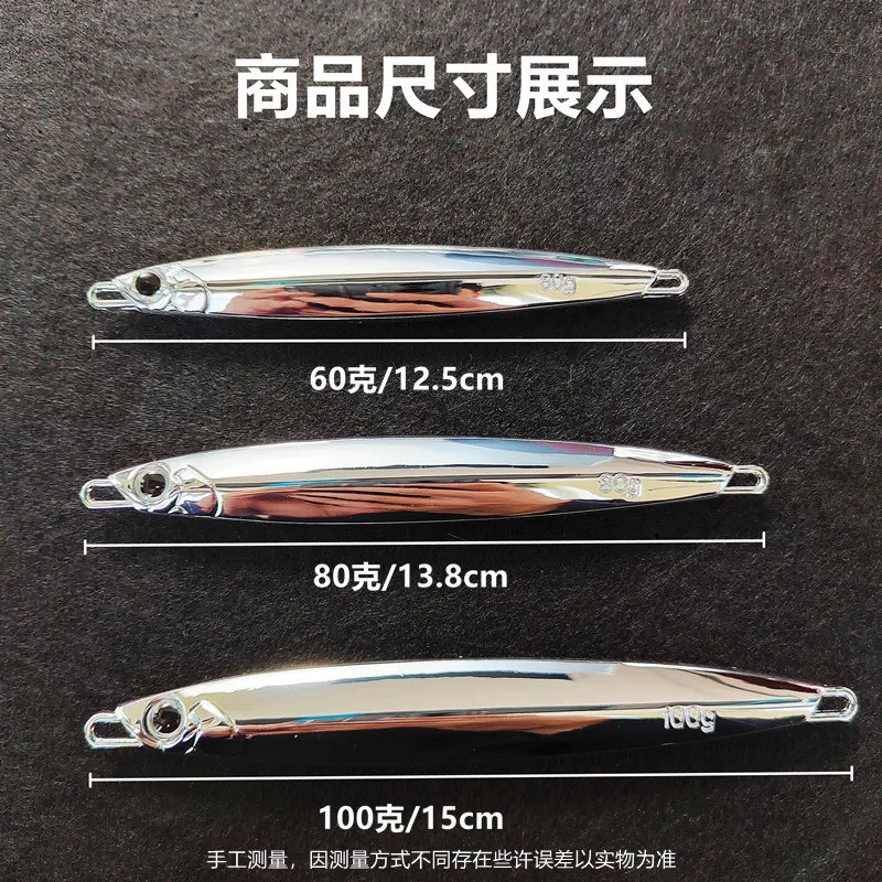 Plantilla de Metal plateado para pesca de lubina, señuelo de pesca, cebo de Jigging fundido, pesca en barco de mar, pargo de caballa, 60g, 80g, 100g
