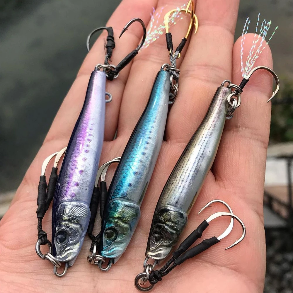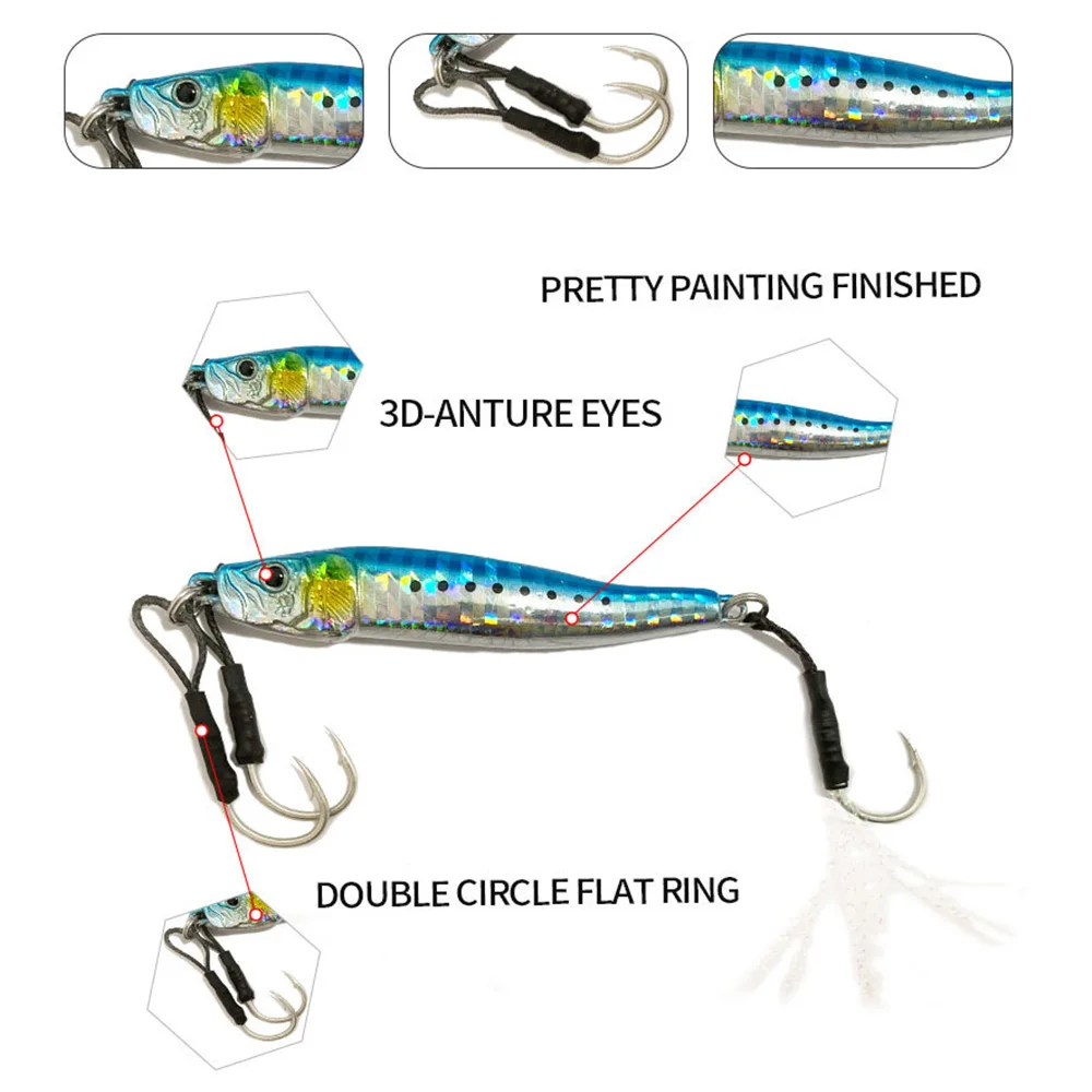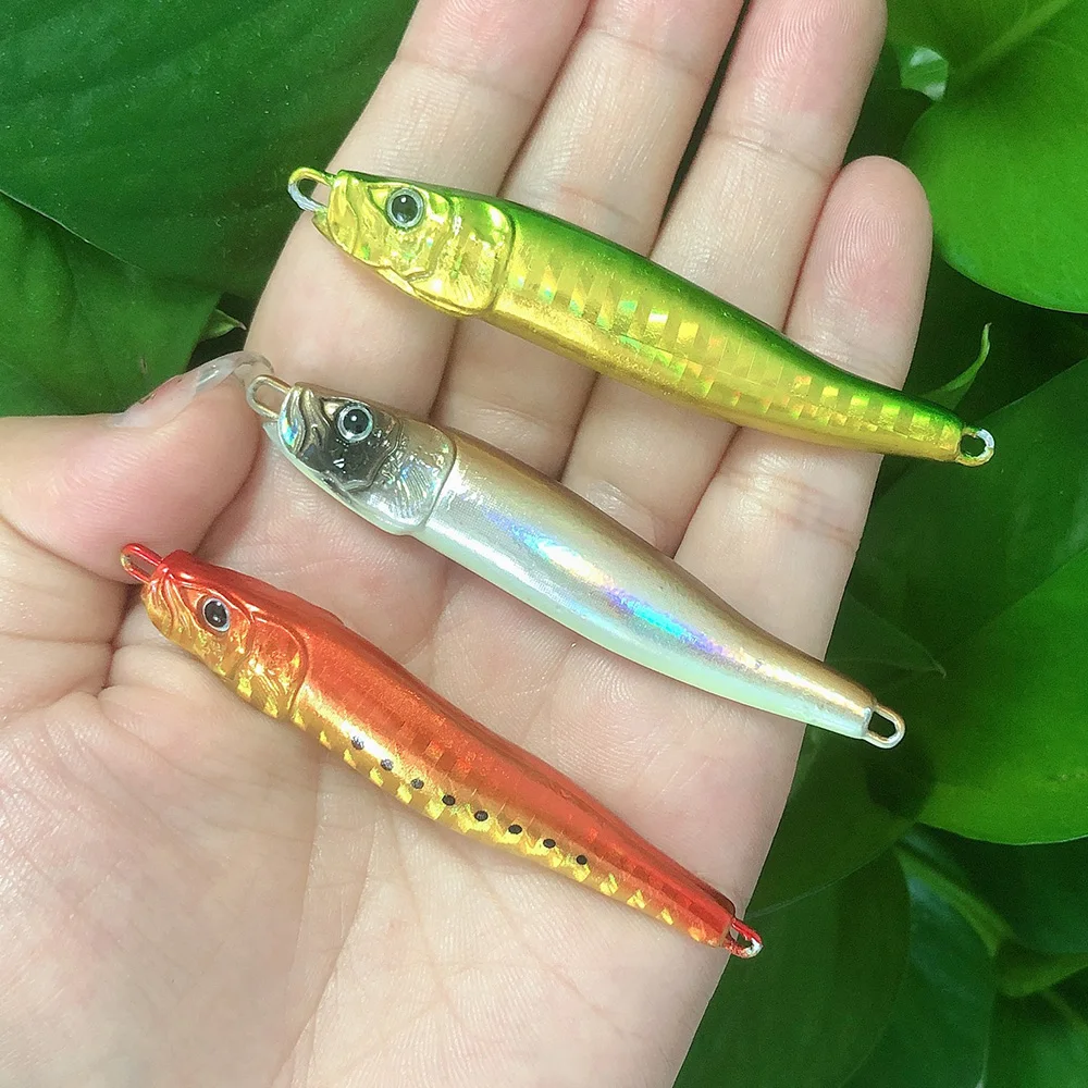 Plantilla de Metal que se hunde 3D, 6,5 cm, 40g, arrastre, pesca en la costa, lubina, trucha, señuelo Isca, cebo Artificial, Pesca, anzuelo de agua salada