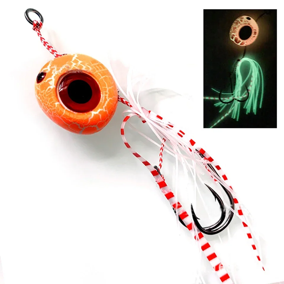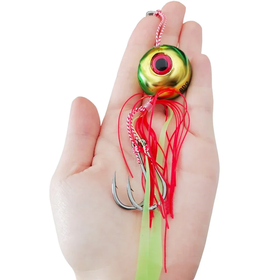 Plantilla de pesca deslizante, cabeza de plomo de falda, ojos 3D, señuelo de Pesca de Mar, anzuelo de asistencia de agua salada, Jigs de goma, 60g 80g 100g 120g 150g 200g
