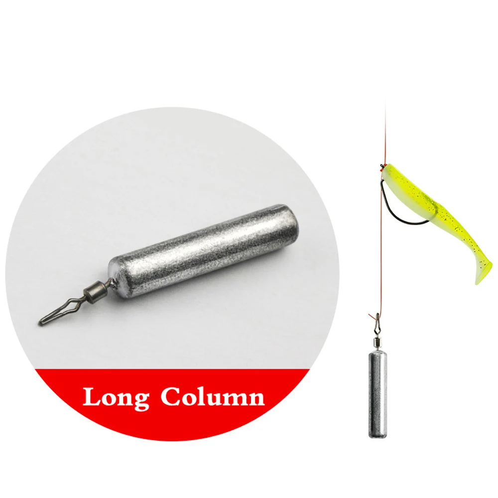 La forma cilíndrica reducirá la posibilidad de atascarse en la piedra. Está hecho de plomo de alta calidad. Aparecerá un flujo de onda de choque cuando llegue el pez. La producción tiene diferente peso, adecuado para diferentes señuelos. También se utiliza junto con señuelos blandos.