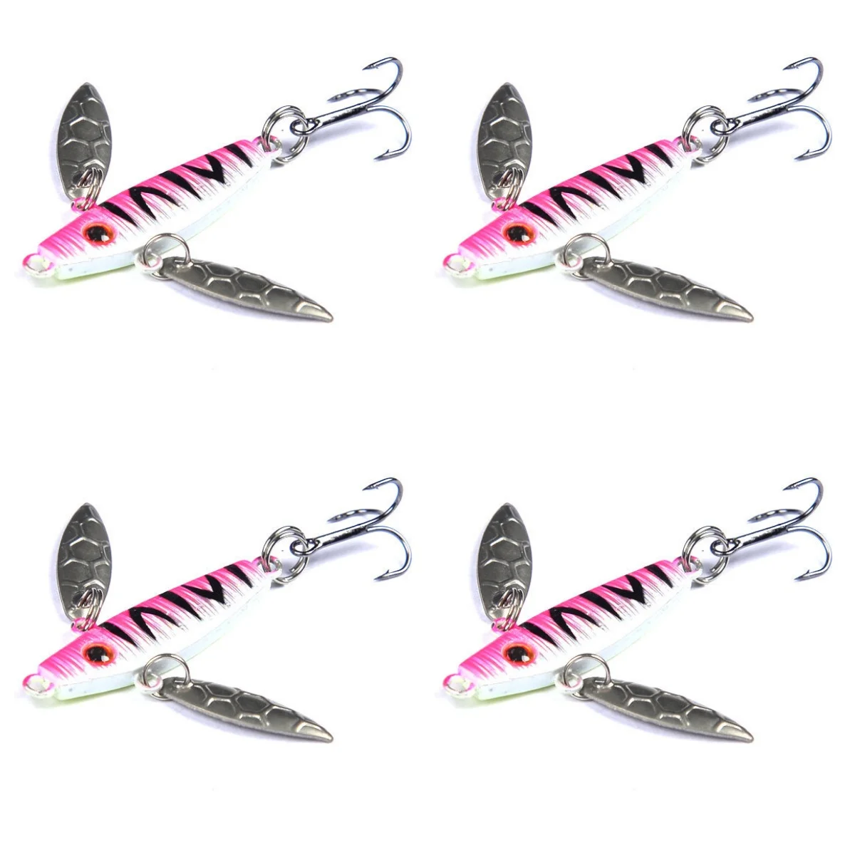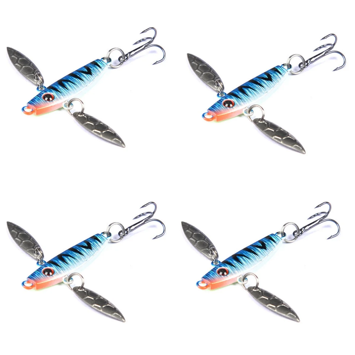 Curved Lead Jig with Two Spinner Blades and Treble Hook - Attracts Fish, Durable, Versatile Lure for Various Fishing Techniques