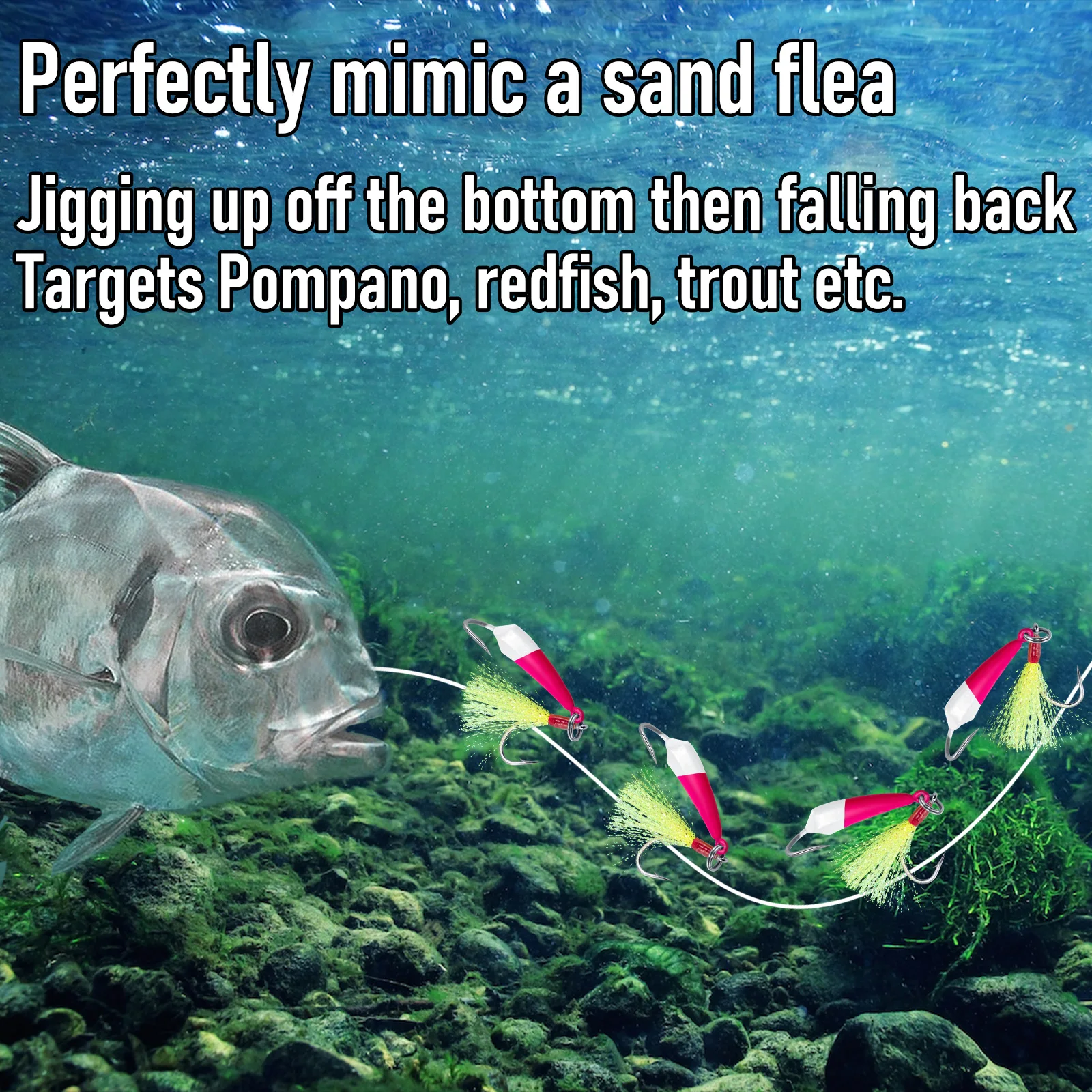 2. Designed with High Visibility Flash Hair: our pompano jigs mimic injured baitfish, making them easy to spot underwater. Whether you prefer casting or vertical jigging, with or without live bait or a plastic trailer, these jigs are versatile and effective.
