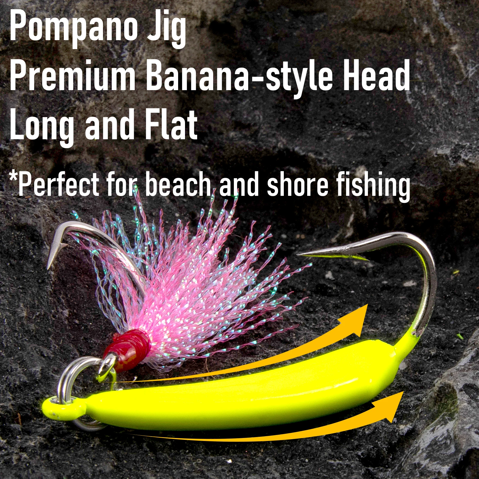 4. The unique design of our pompano jig, shaped like a banana, mimics a sand flea jigging up off the bottom and then falling back down. This realistic movement attracts pompano and increases your chances of a successful catch.