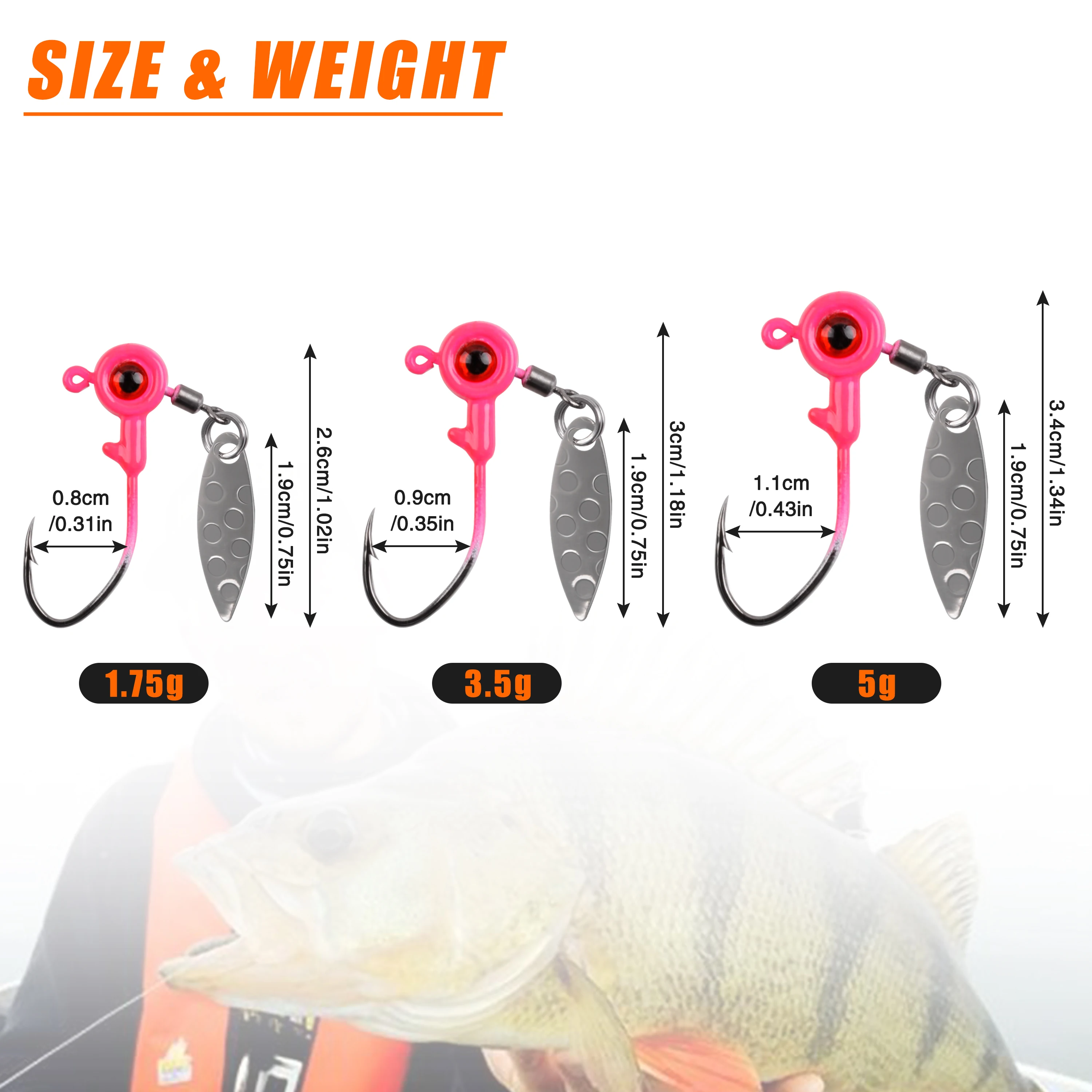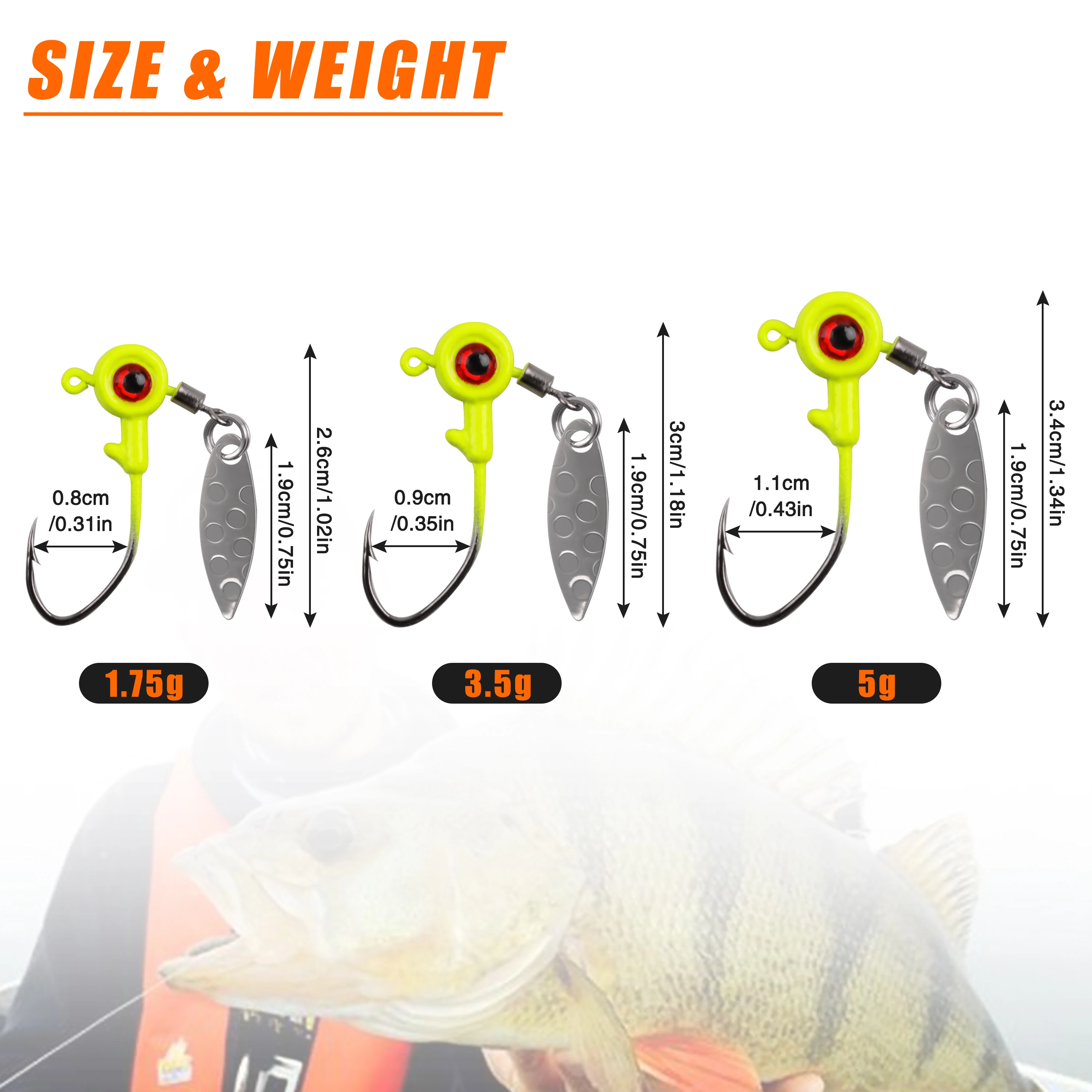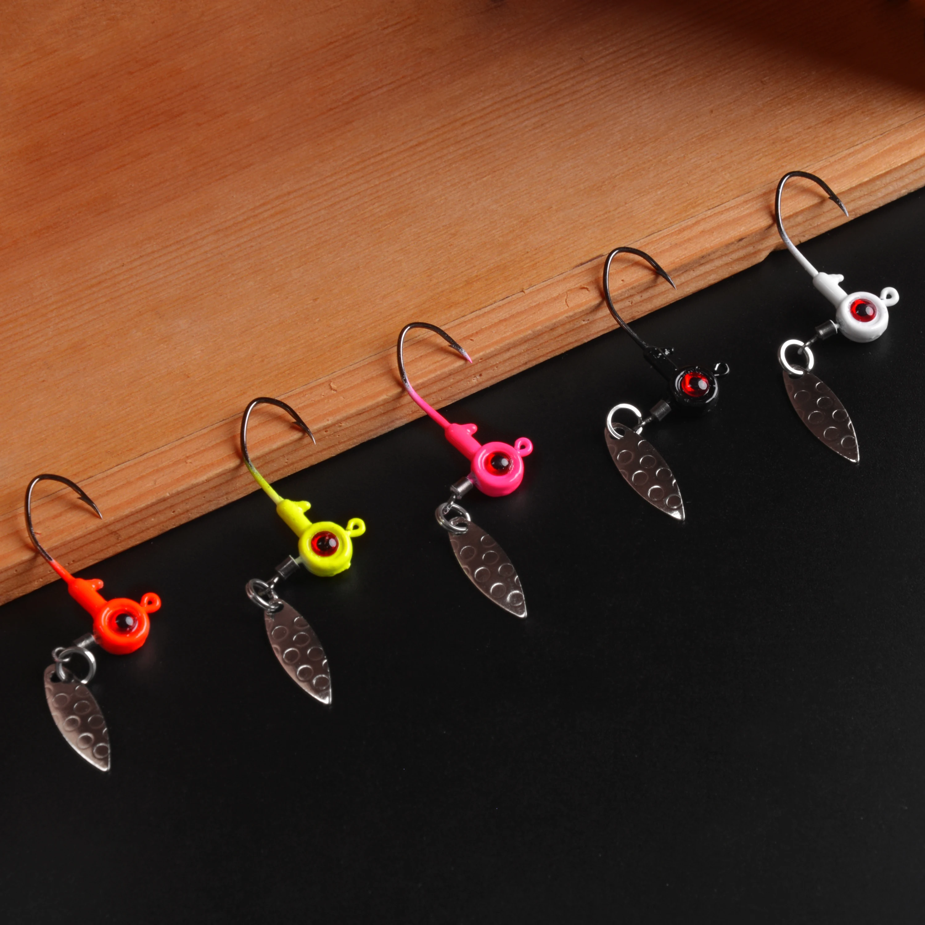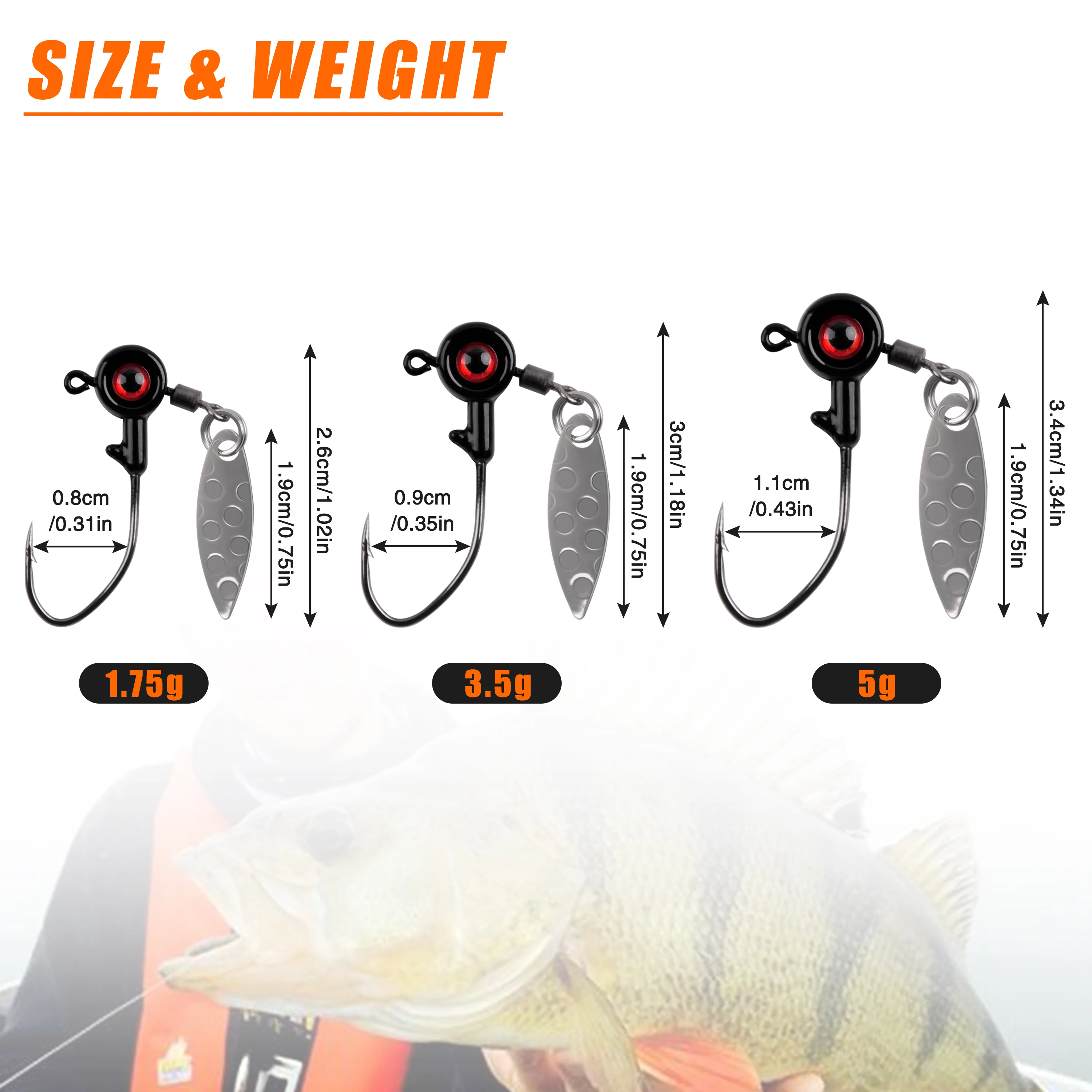(1) El anzuelo de agua de pesca está diseñado con grandes ojos brillantes y un accesorio de hoja, que proporciona muchos destellos brillantes y atrae más peces. El diseño de la estructura de anzuelo es perfecto para permitirle atrapar el pez deseado rápidamente.