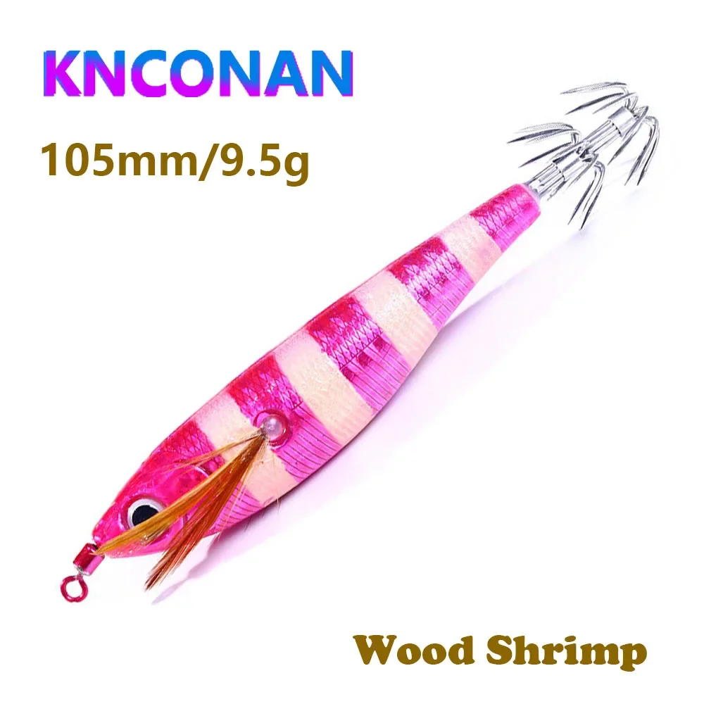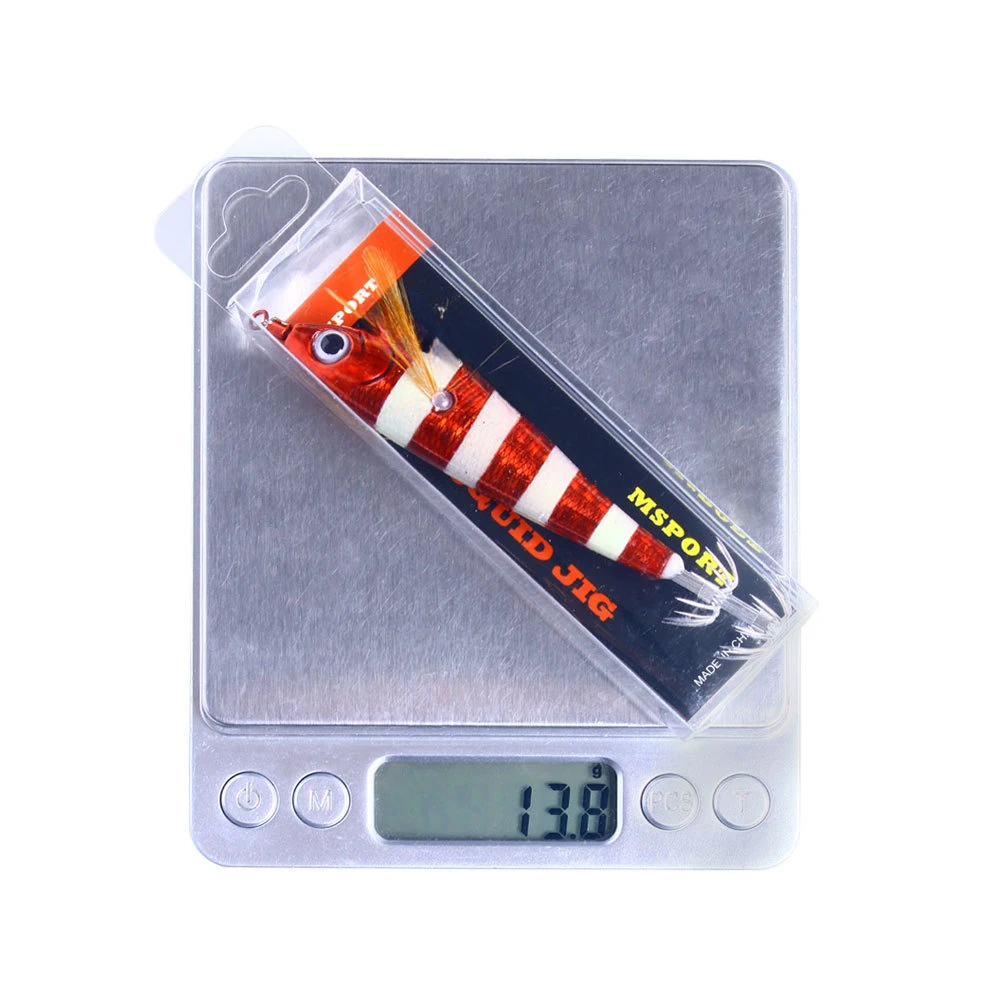 Plantillas de calamar luminosas en caja de 105mm y 9,5g, anzuelo de calamar, pulpo, camarones de madera, sepia, señuelo de pesca, anzuelo de doble paracaídas, cebo de fundición