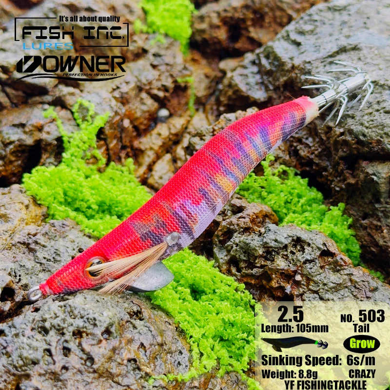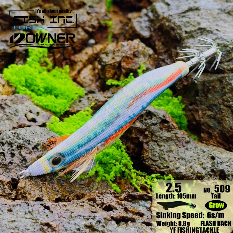 Plantillas de calamar con tinta de pez, 2,5 EGI, señuelo de pesca, desgarrador de madera, ocultos para cortar, gananchos de cola brillante, 12 gramos, pesca de rocas y barcos