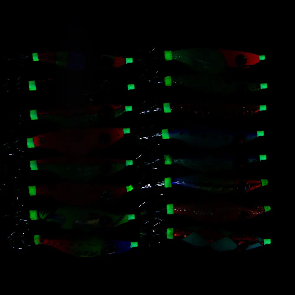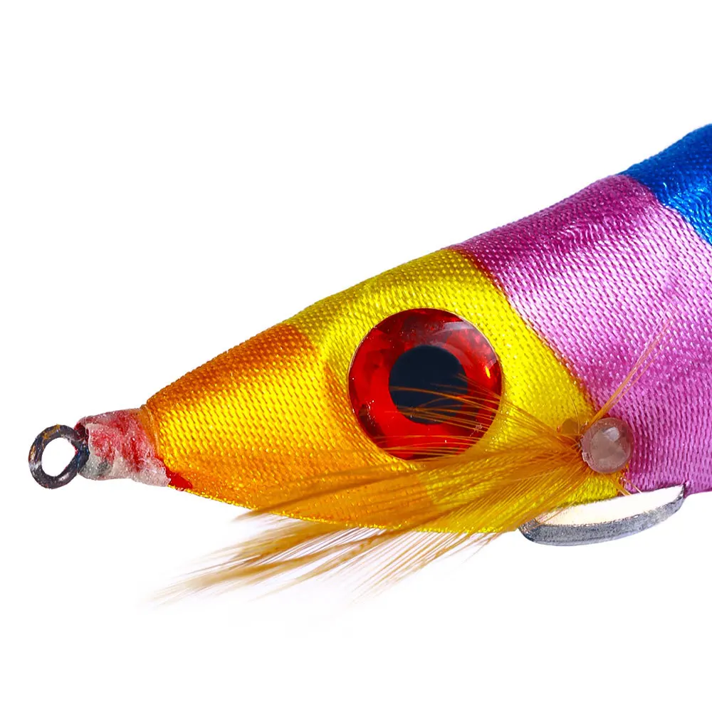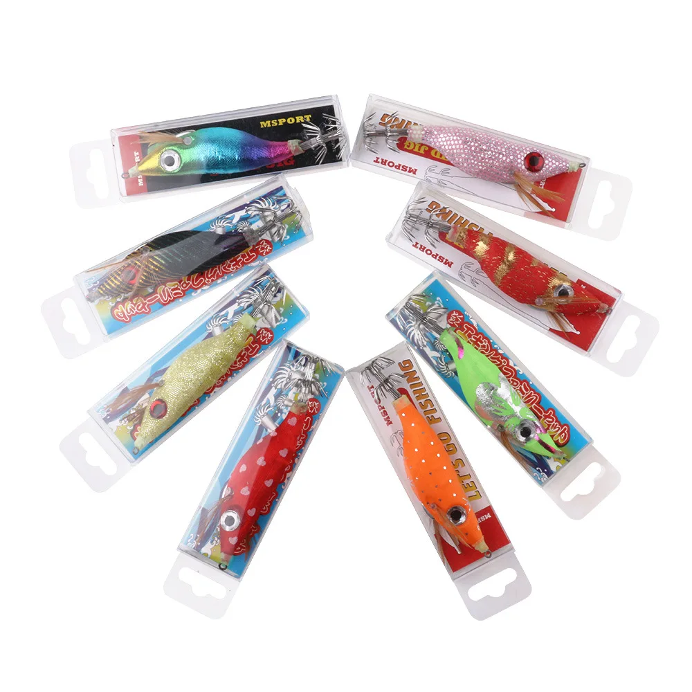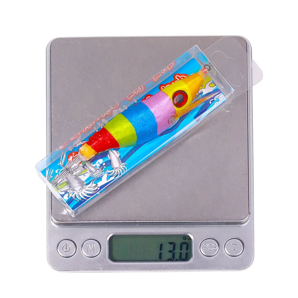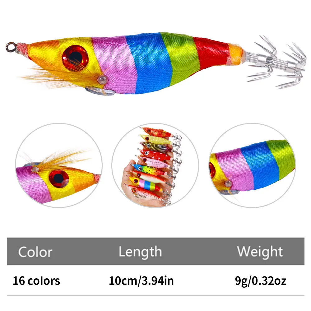 Plantillas luminosas de calamar, anzuelo de calamar de pulpo, camarón de madera, sepia, señuelo de pesca, anzuelo de paracaídas doble, equipo de cebo de fundición, 100mm, 9g