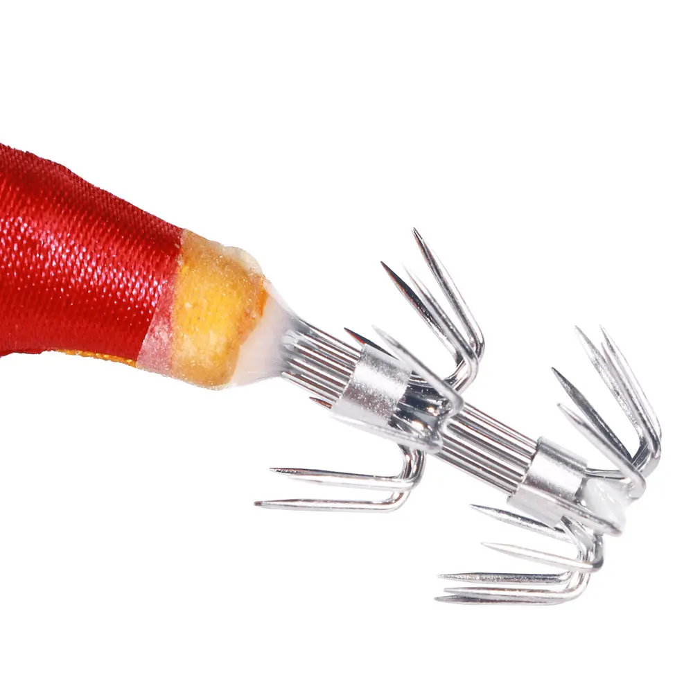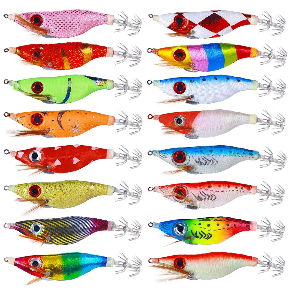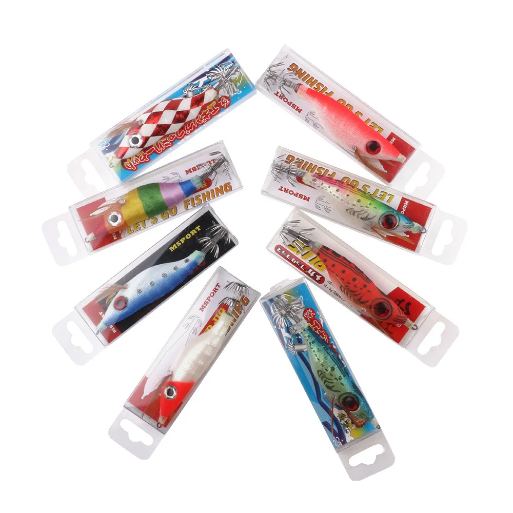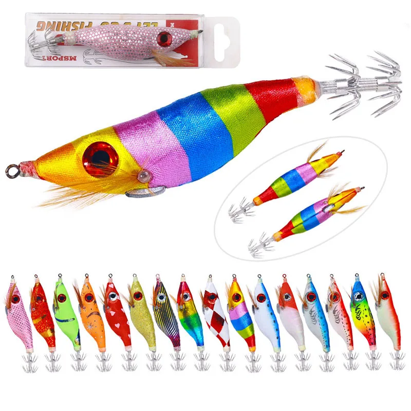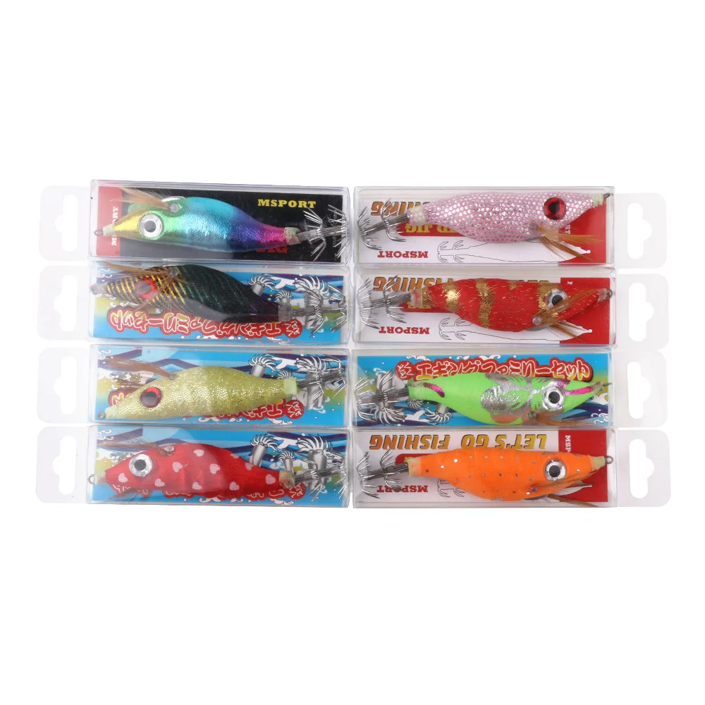 Plantillas luminosas de calamar, anzuelo de calamar de pulpo, camarón de madera, sepia, señuelo de pesca, anzuelo de paracaídas doble, equipo de cebo de fundición, 100mm, 9g