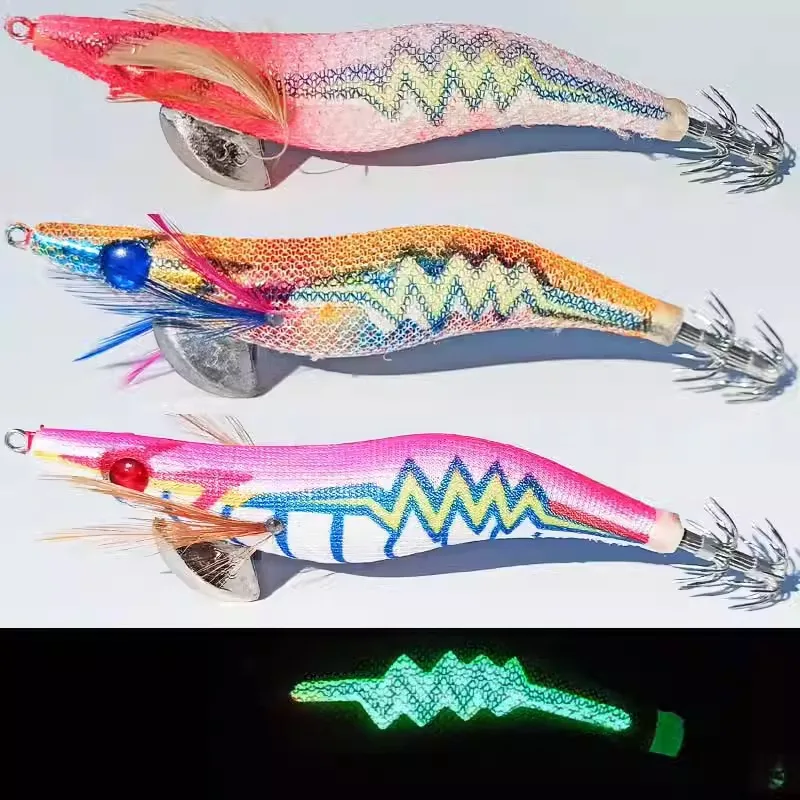 Plantillas luminosas de calamar y camarones, juego de Señuelos de Pesca de Mar, sepia Artificial, pulpo, pesca de invierno, 13cm/2,5g, 1 ud.