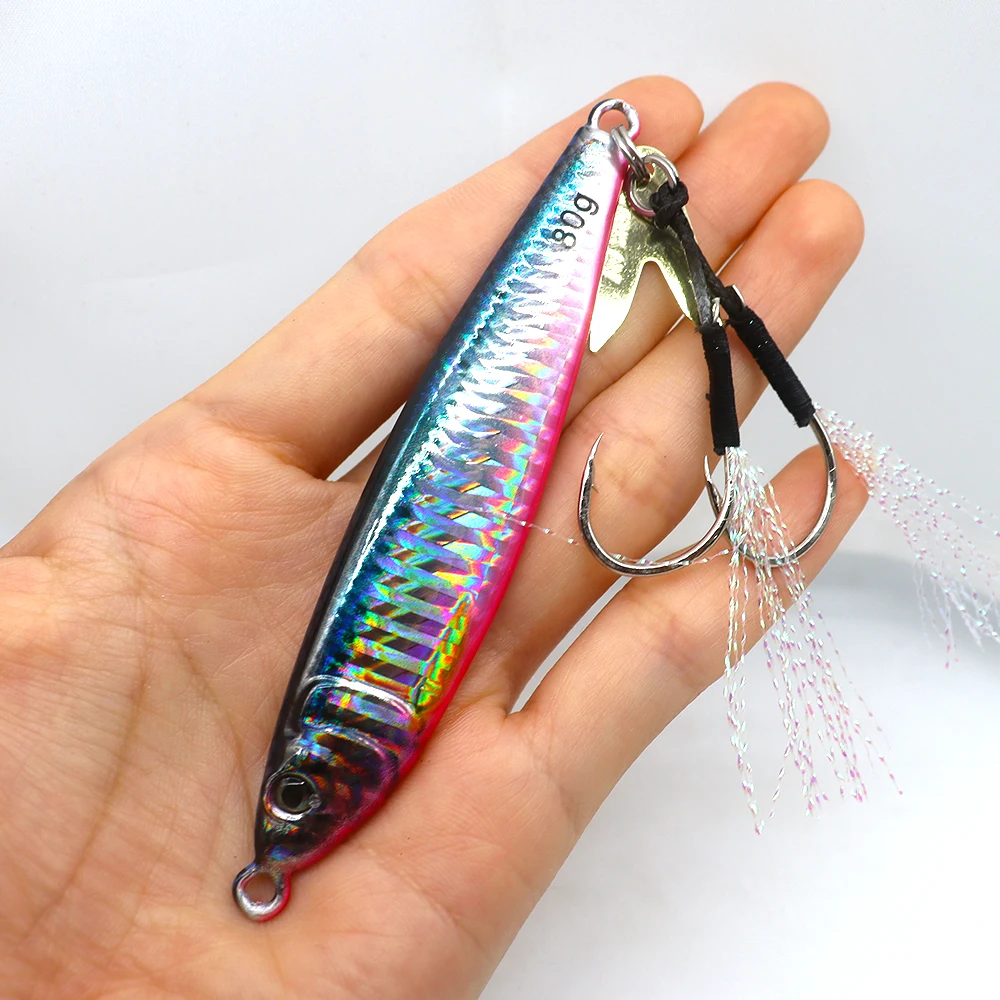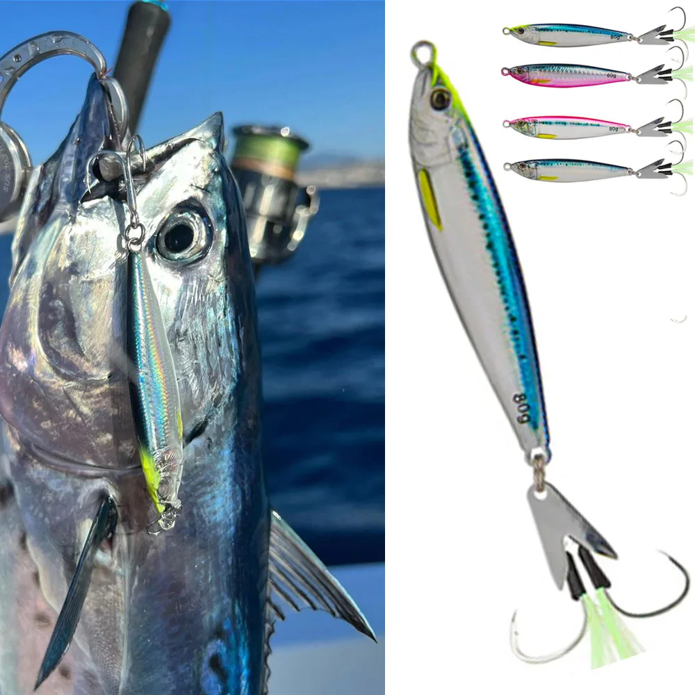 Señuelo de pesca de agua salada 3D Jig Shore Jigging 40G60G80G, cebo duro Drag Cast, cuchara para lubina, cebo para trucha, señuelos para atún, Mahi Marlin