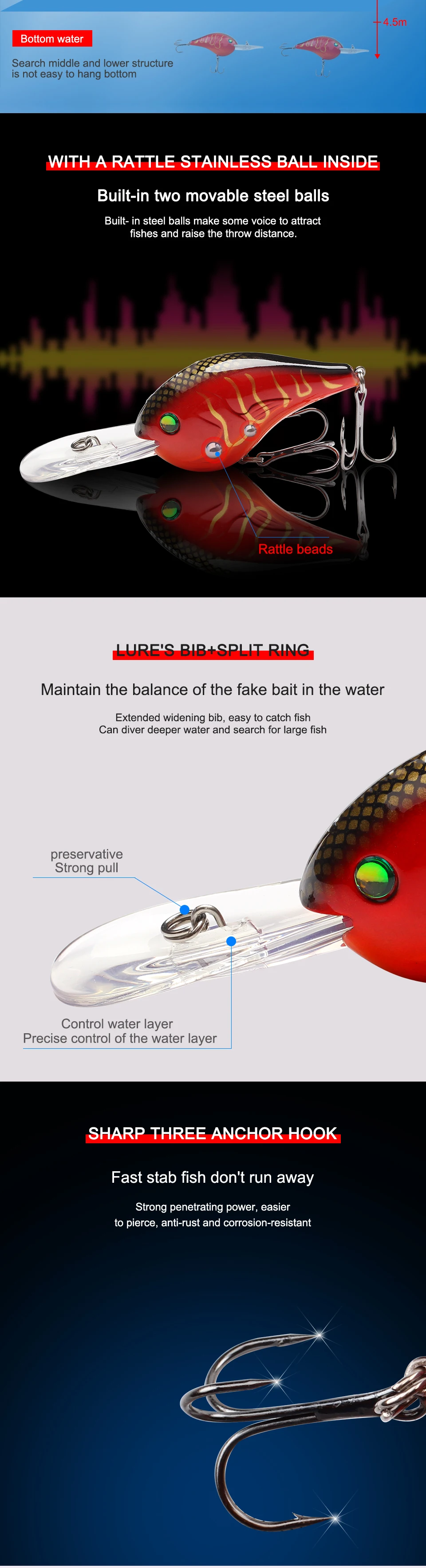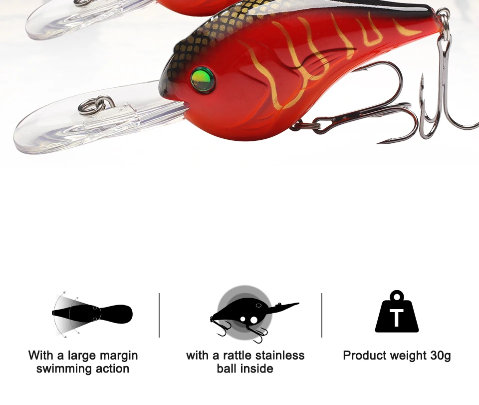 Plástico duro Artificial 75mm 24g pequeños cebos de manivela de buceo profundo pequeños sonajeros flotantes Crankbait Señuelos de pesca