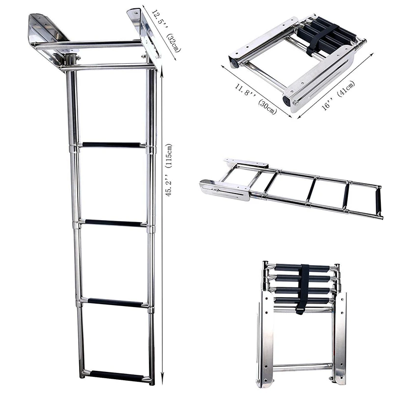 Plataforma inferior de acero inoxidable de 4 escalones, montaje deslizante, escalera telescópica de embarque para barco, accesorios marinos
