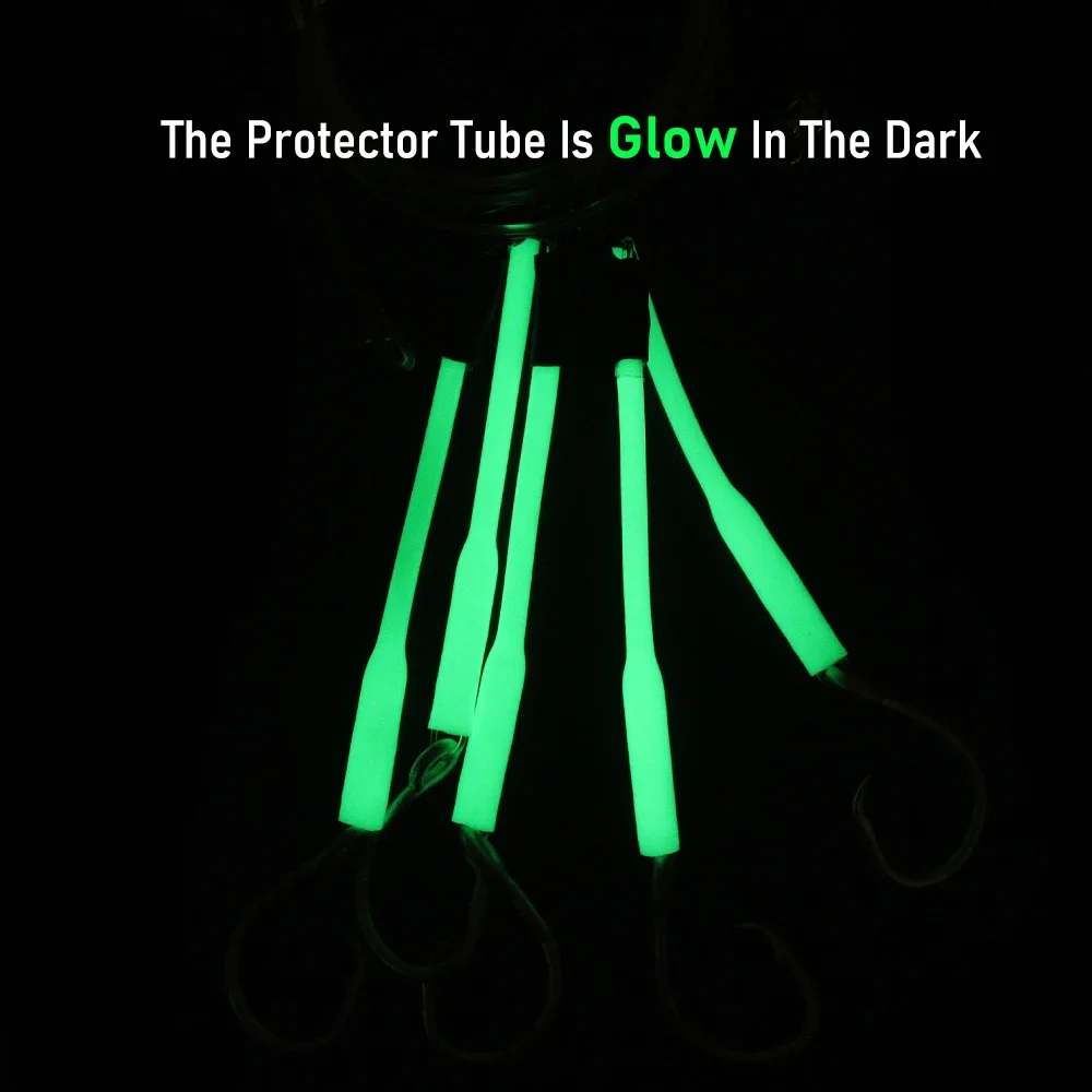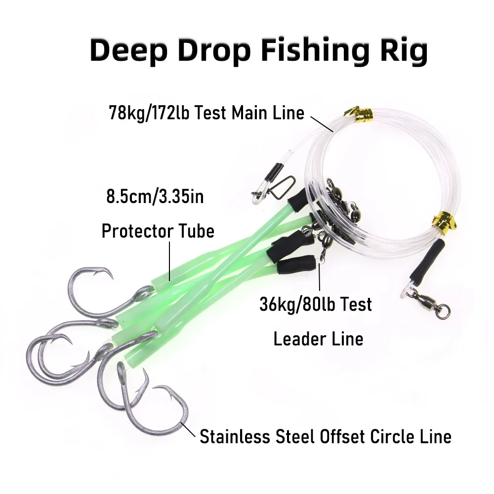 -Eficiente aparejo de pargo profundo con 5 anzuelos circulares y fundas protectoras luminosas, perfecto para apuntar a peces de azulejos, meros, pargo rojo, atún, tiburones, etc.
