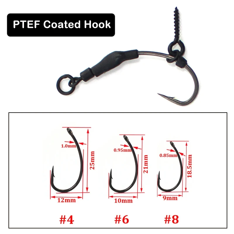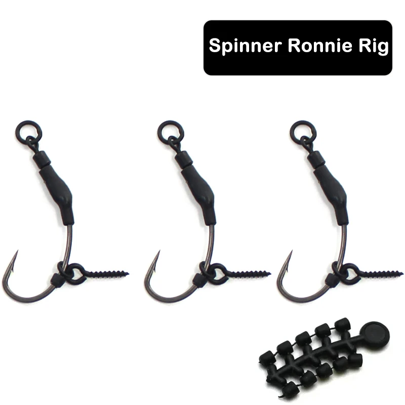 Aparejo listo para pesca de carpa de 3 6/8, Spinner Ronnie listo con topes de gancho, cuentas, cebo giratorio, gancho de tornillo, accesorios recubiertos de PTEF 4/