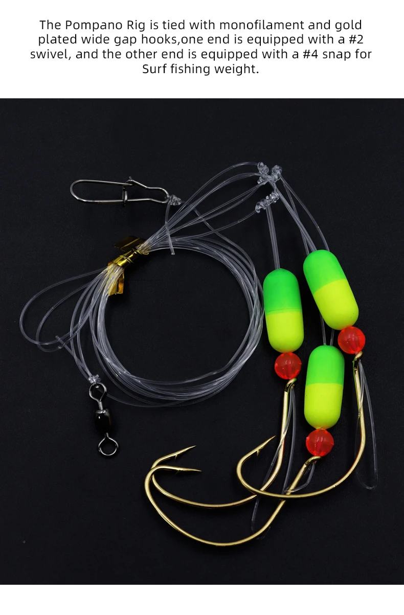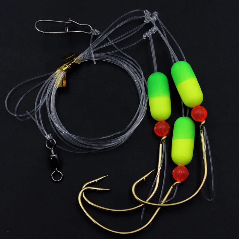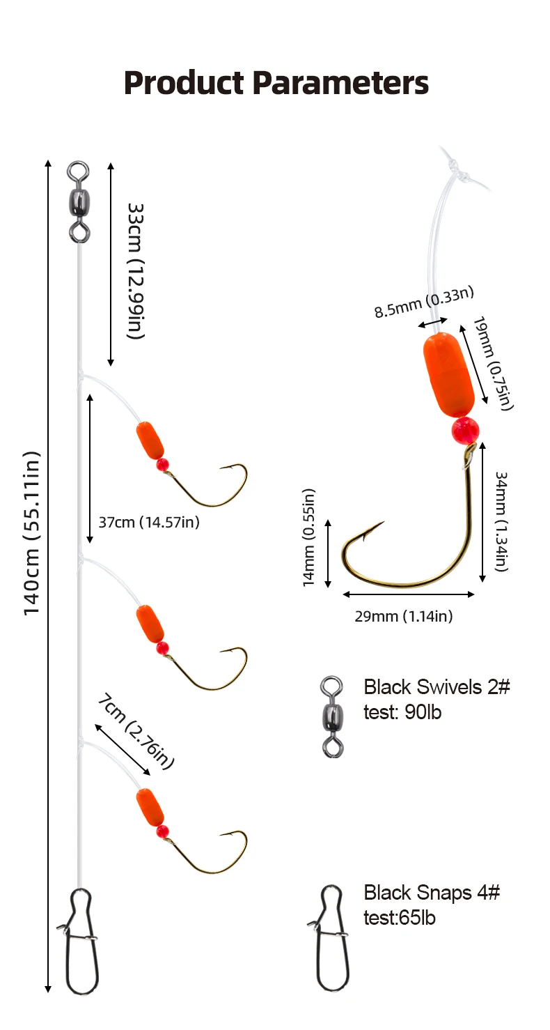 1.Atado con monofilamento y púas, con un#2 giratorios en un extremo y un#4 broches en el otro, puede soportar 35 libras de tracción.