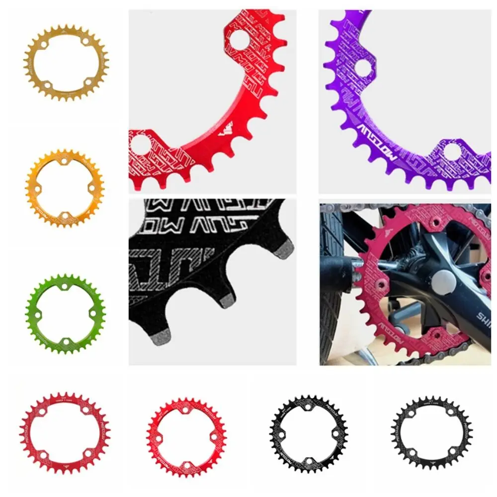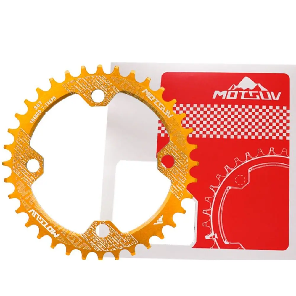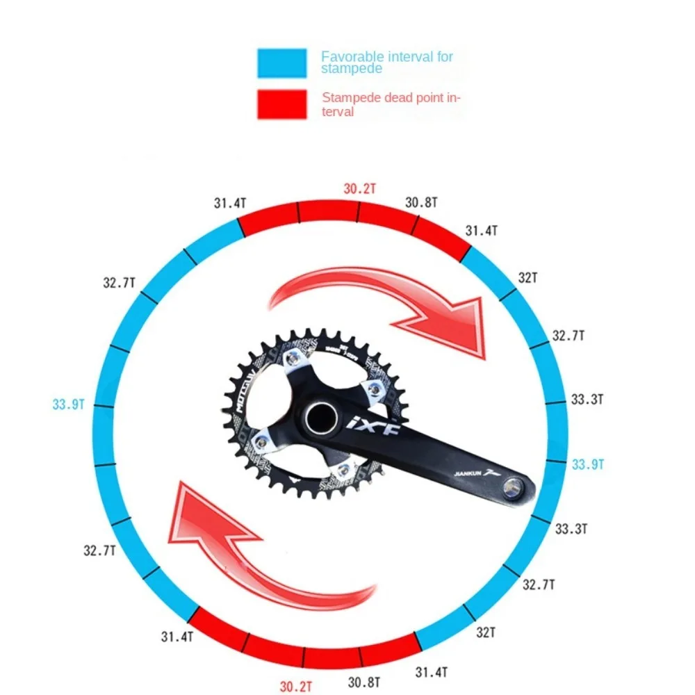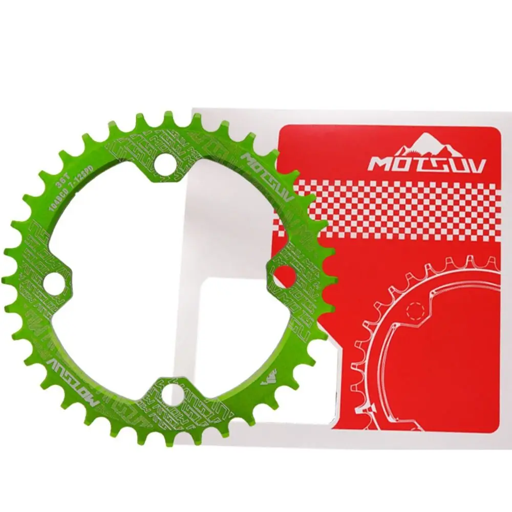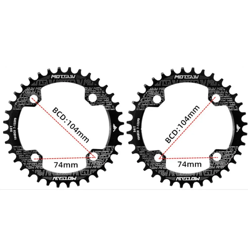 Forma: placa única REDONDA/ovalada dientes: 30T / 32T / 34T / 36T/ 38T tamaño: 104BCD=104mm (4,09 pulgadas) Color: negro/azul/rojo/verde/amarillo/Morado. Embalaje: 1 ud. 104BCD Diagrama de cadena estrecha y ancha. Nota: los dientes "+" corresponden a la parte ancha de la cadena. Los dientes "-" corresponden a la parte estrecha de la cadena.