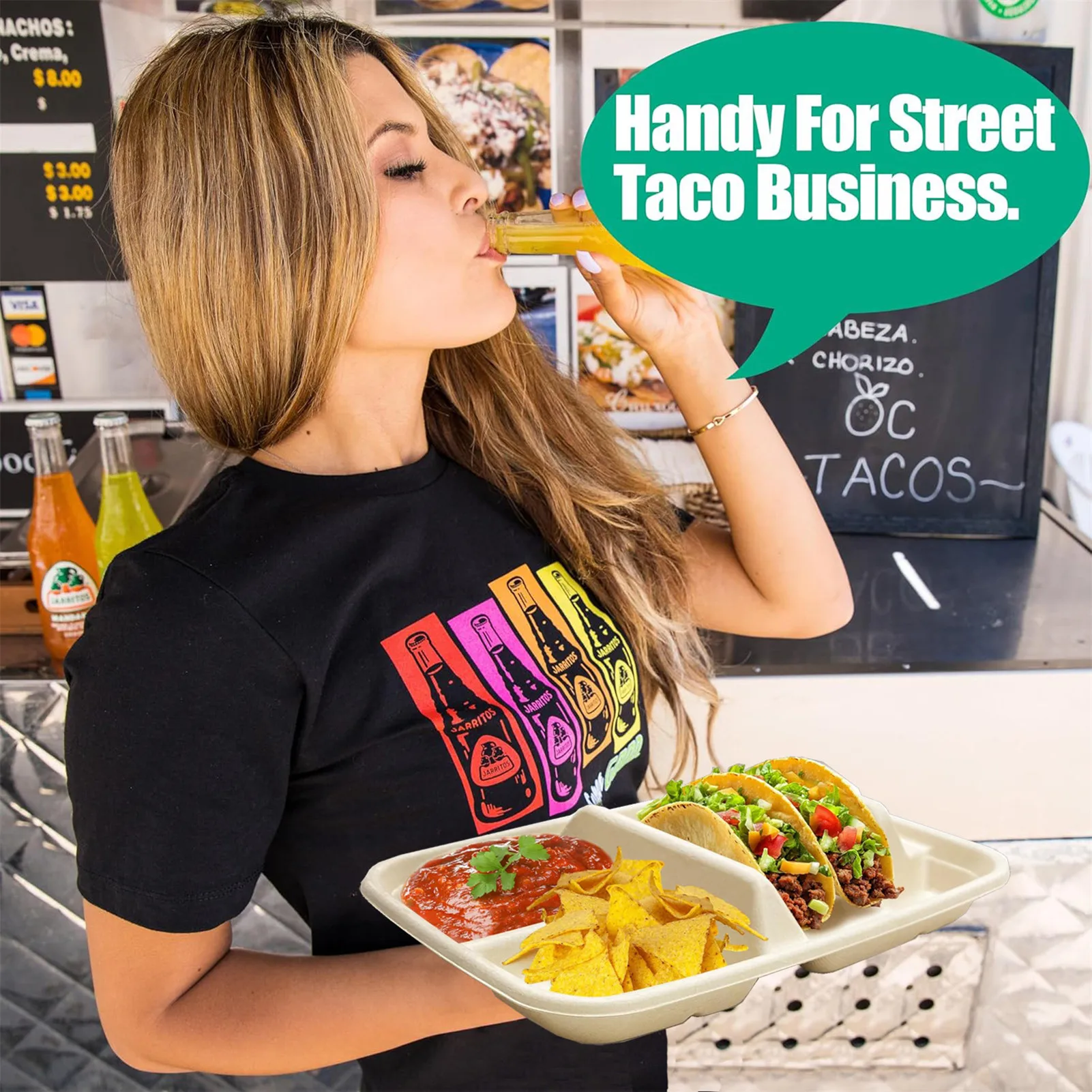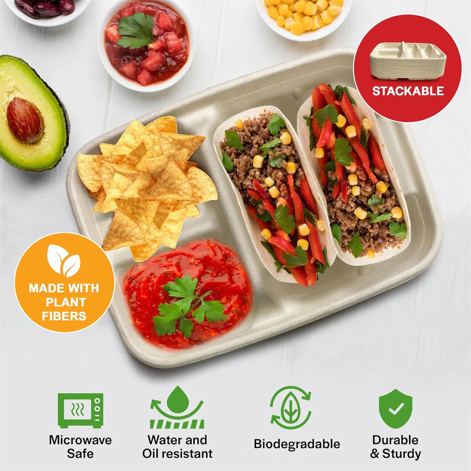 Versátiles y duraderas: diseñadas para brindar comodidad, estas placas para servir tacos con divisores son aptas para lavavajillas y microondas, y ofrecen opciones de fácil limpieza y recalentamiento para cocinas ocupadas, cafeterías o amantes del taco.