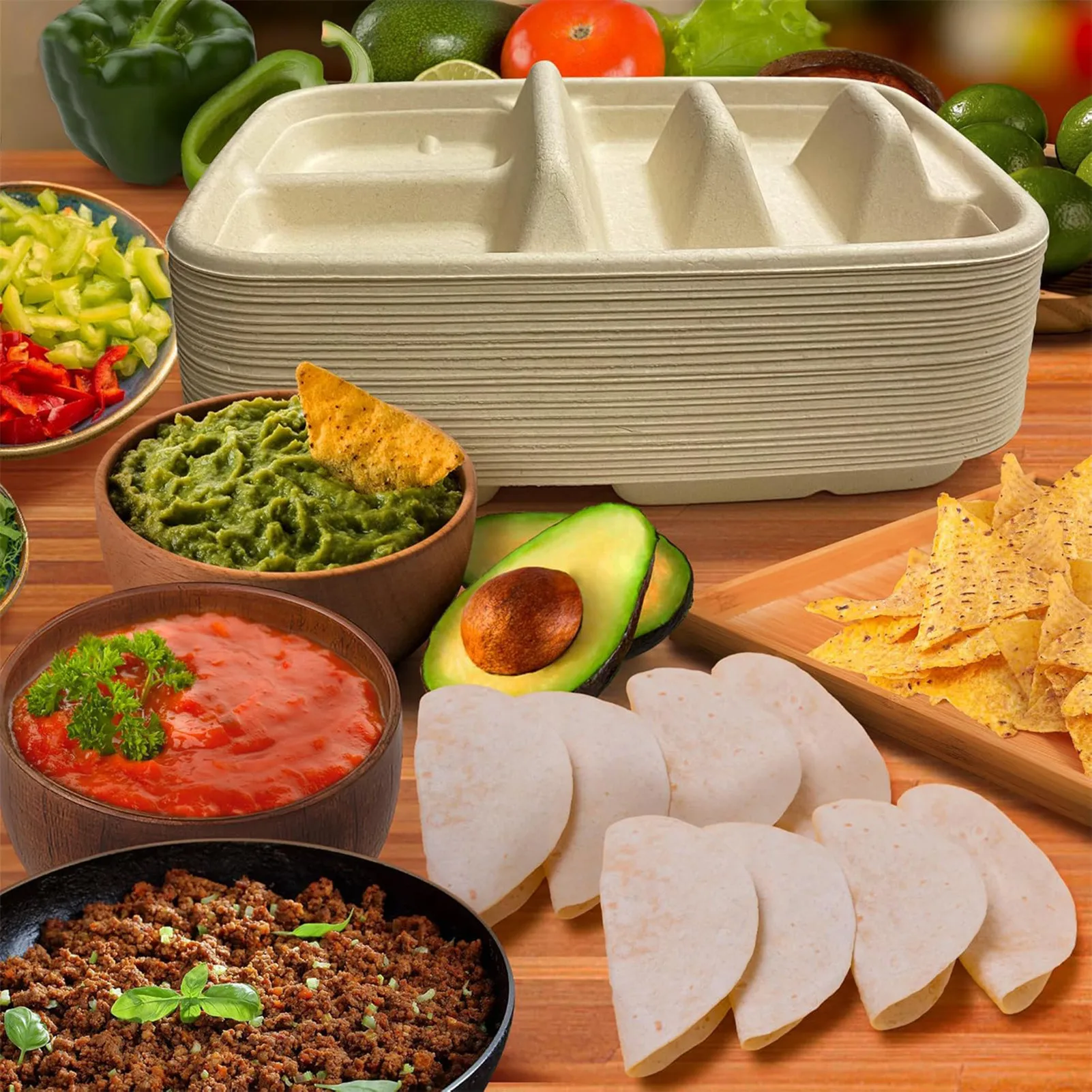 25 platos para tacos de pulpa de cocina.