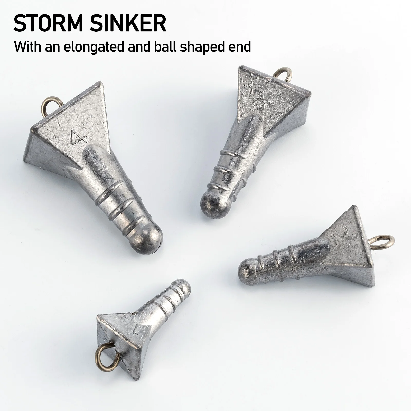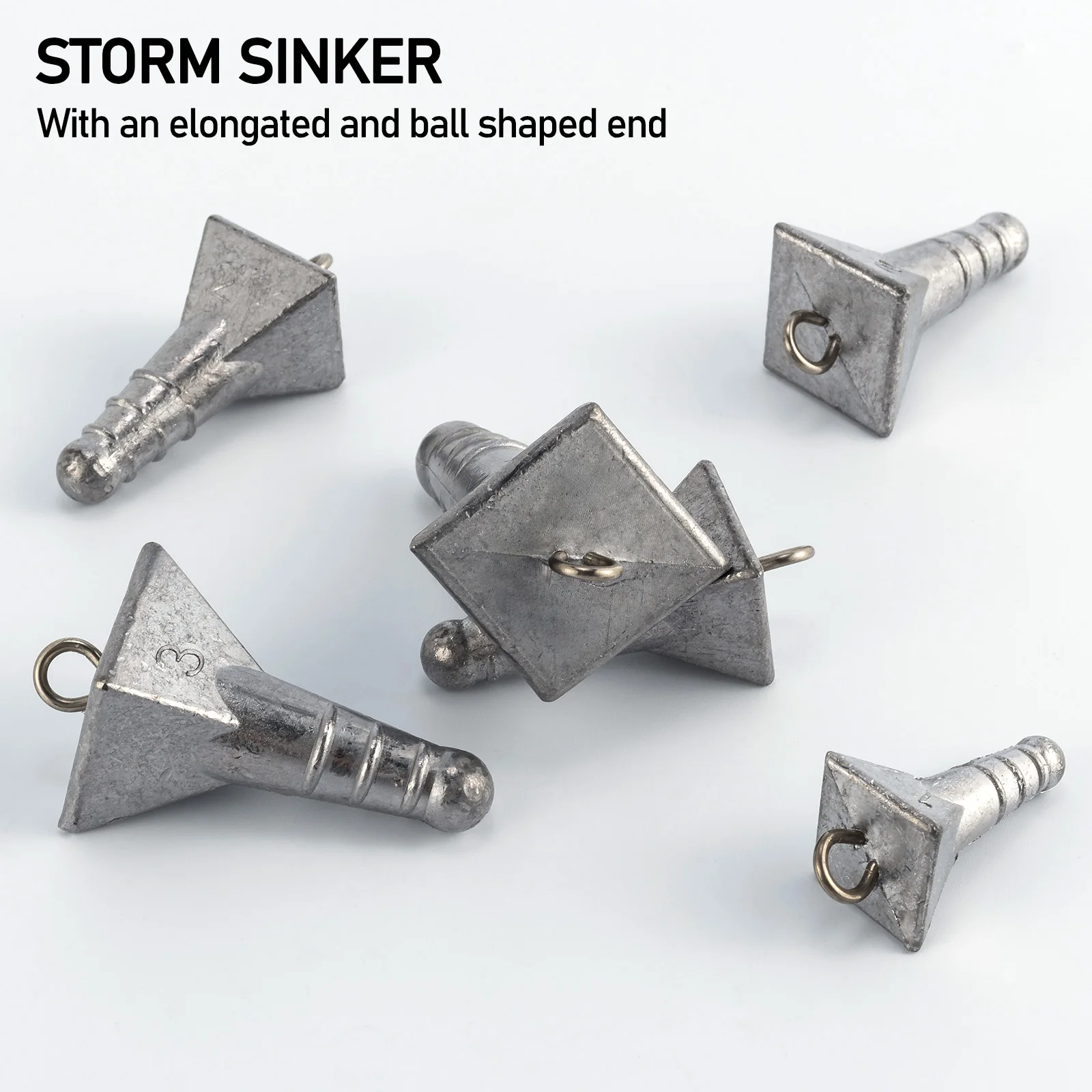 El plomo de la tormenta es un plomo de pesca piramidal modificado, con un extremo alargado y en forma de bola