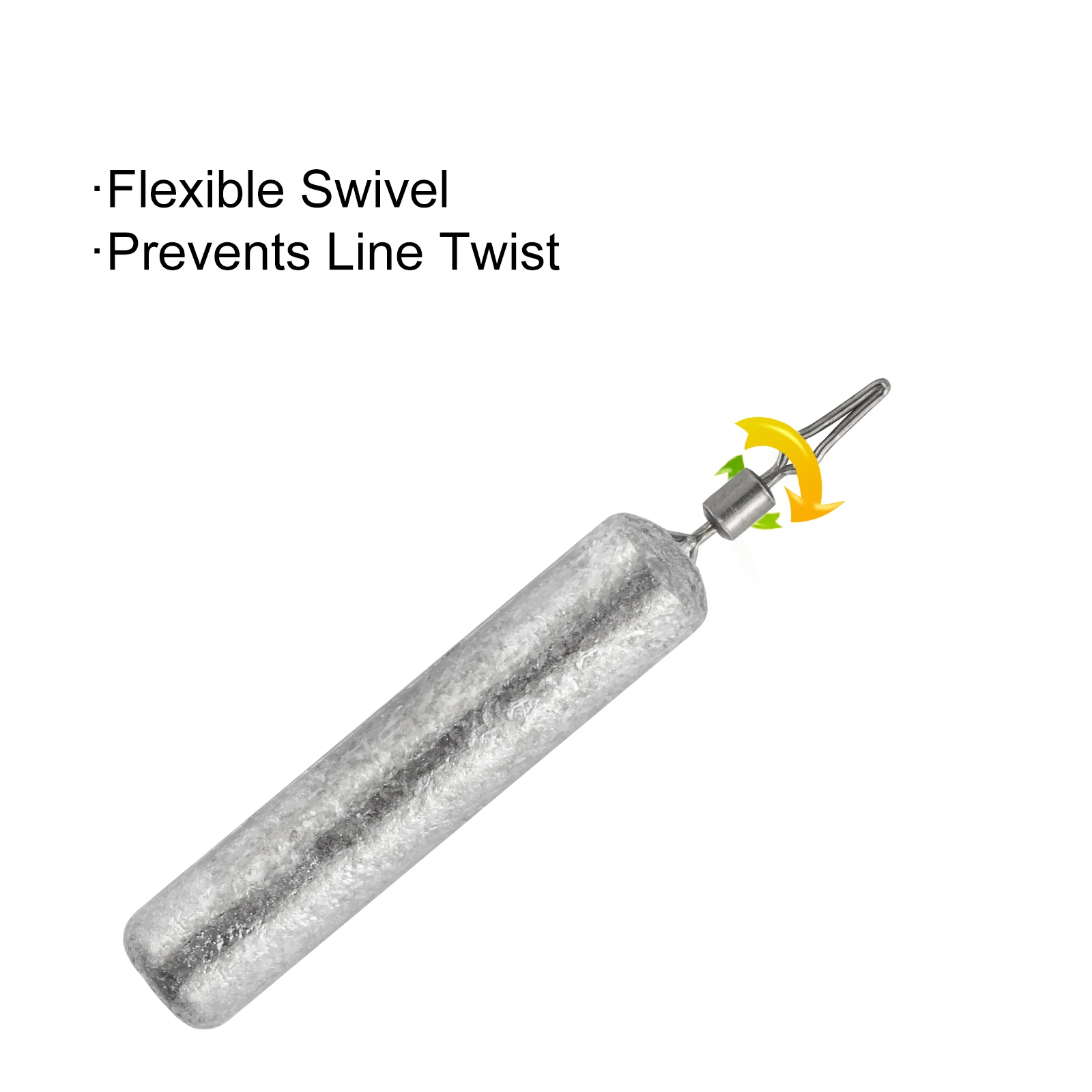 Hecho con plomo de alta calidad para garantizar un uso prolongado. Viene con un eslabón giratorio para un montaje rápido y proteger sus líneas.