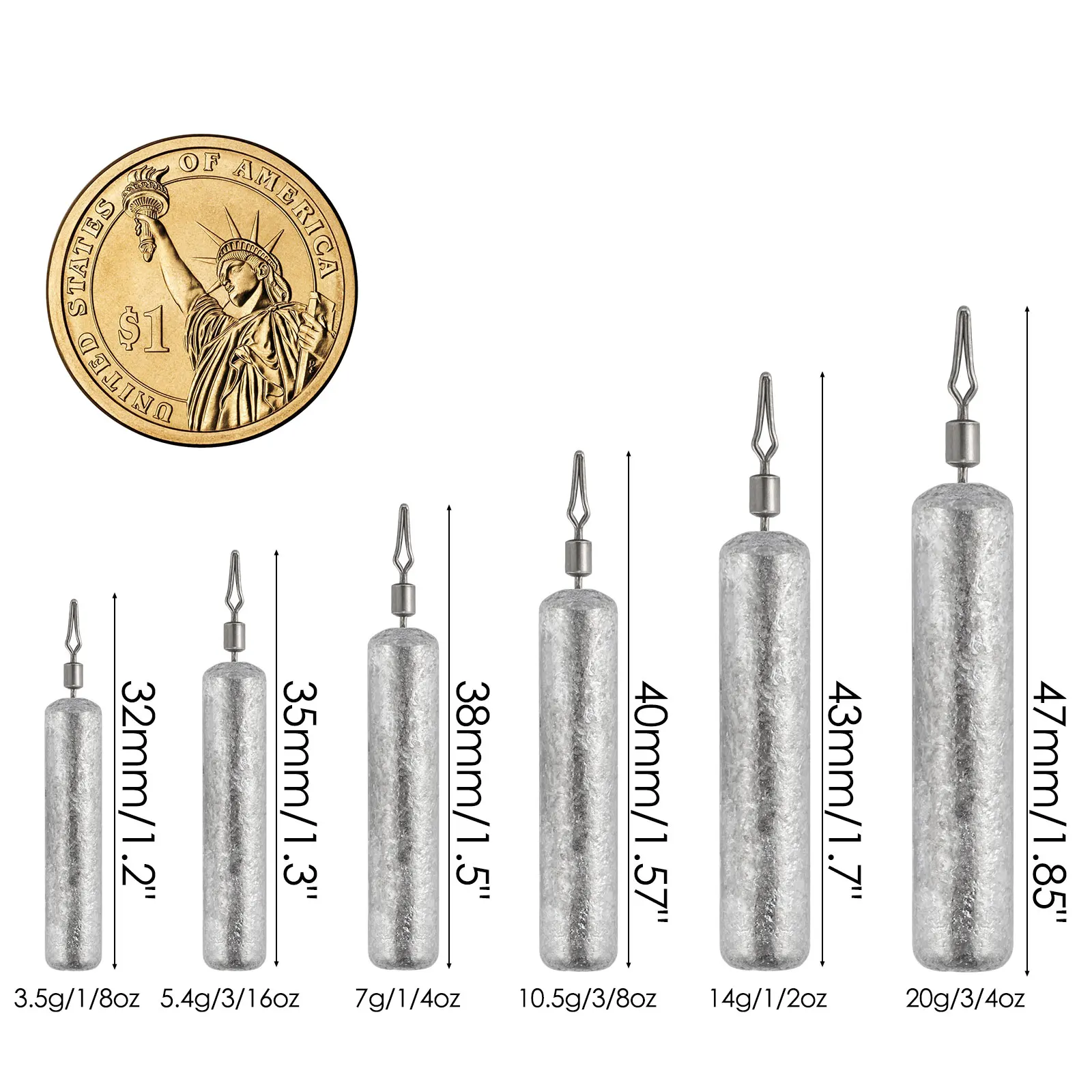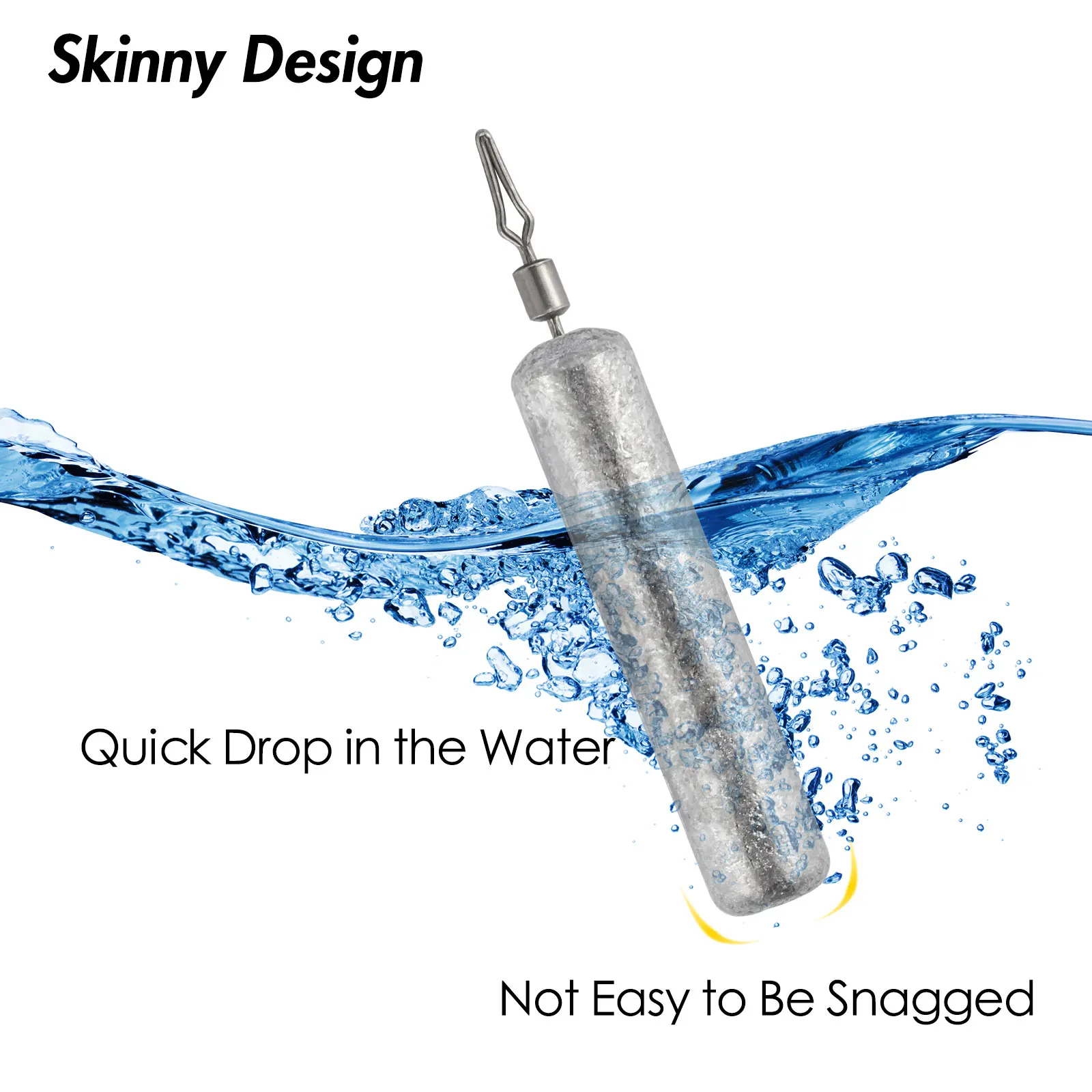 Diseño delgado:El diseño delgado hace que los pesos del cilindro caigan en el agua rápidamente y eviten que se enganche. Le ayuda a lanzar con un mejor rendimiento y precisión. Los eslabones giratorios del rodamiento de bolas pueden girar 360 °, evitando que su línea se gire.