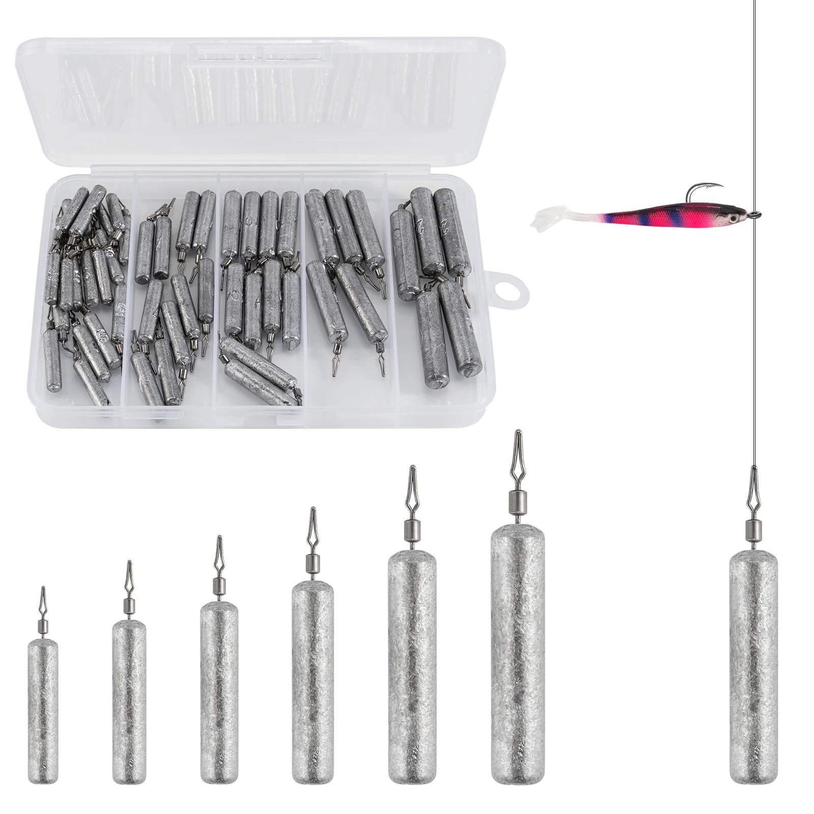 Diseño delgado:El diseño delgado hace que los pesos del cilindro caigan en el agua rápidamente y eviten que se enganche. Le ayuda a lanzar con un mejor rendimiento y precisión. Los eslabones giratorios del rodamiento de bolas pueden girar 360 °, evitando que su línea se gire.