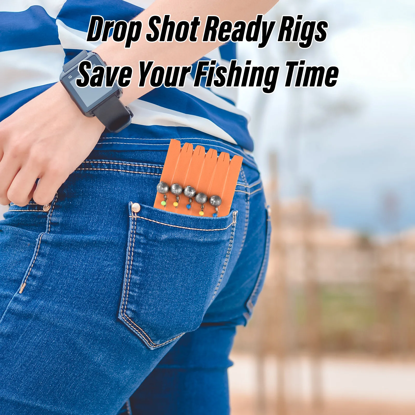 Las plataformas Drop shot Ready hacen innecesario que pases mucho tiempo montándolas. Simplemente tome estos aparejos listos para ir a pescar en cualquier momento.