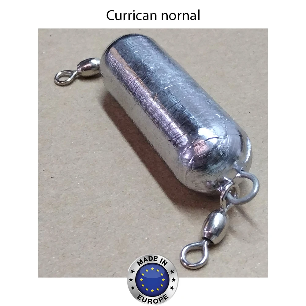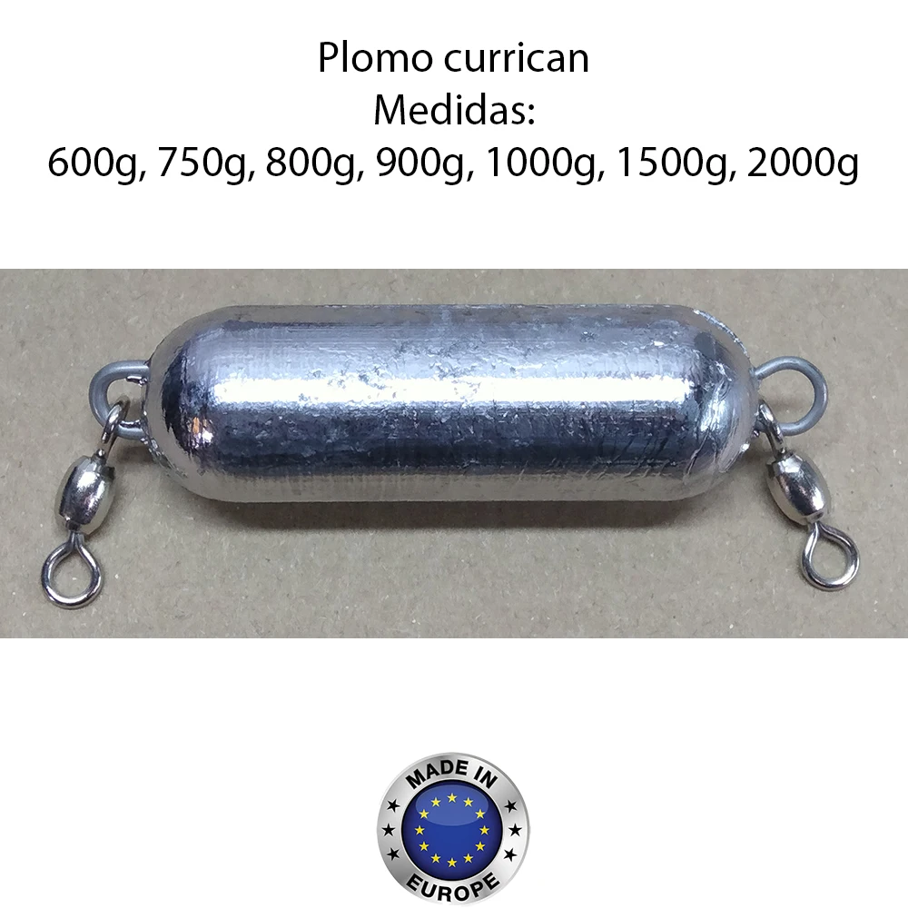 Plomo Curricán con anilla de acero inox y crane. Medidas: 600g, 750g, 800g, 900g, 1000g, 1500g, 2000g.