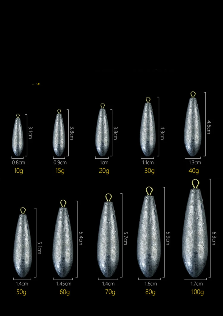 Plomo de gota de agua 5 unids/lote 10g/15g/20g/30g/40g/ 50g gotas de agua pesas de plomo plomo plomo de pesca accesorios de pesca