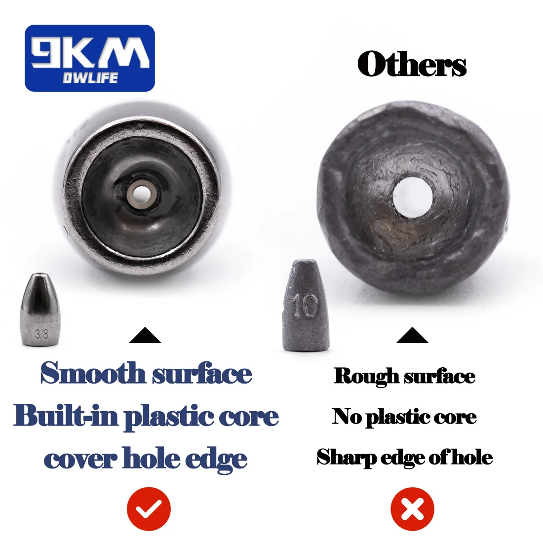 Las plomadas de pesca tipo bala se pueden utilizar como pesas deslizantes en varias configuraciones de aparejo.Se puede utilizar con anzuelos desplazados EWG, cebo blando de gusano de plástico y cuentas de pesca.