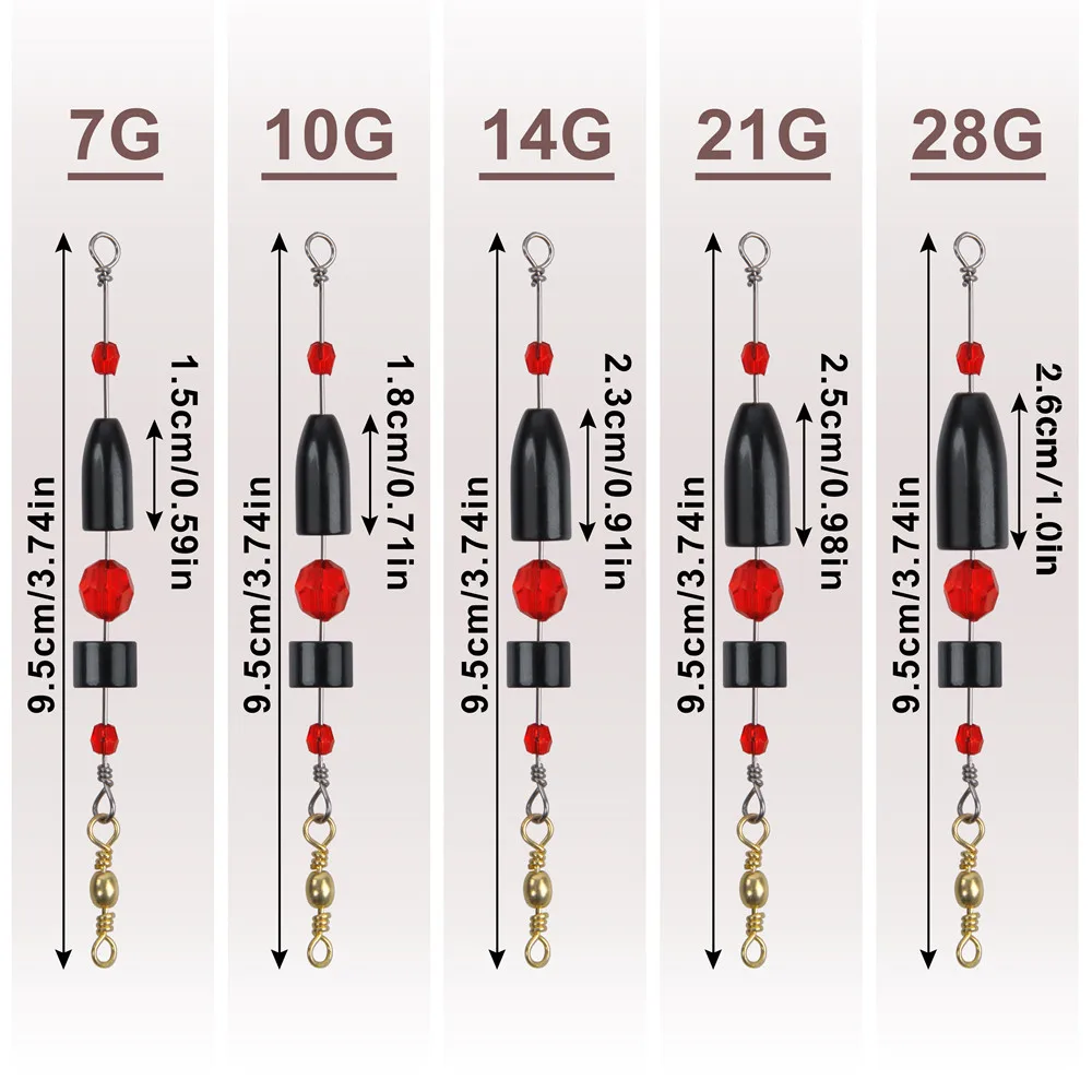 Cantidad: 12 Uds. Material: plomada de cobre Tamaño: 7g, 10g, 14g, 21g, 28g Color: Negro Características: Aparejo de plomada de latón puro, anticorrosión y excelente mano de obra. Aparejo esencial listo para Carolina, fácil de usar. Diferentes pesos, más opciones. Nota: puede haber algunos errores de medición, no se preocupe. Gracias