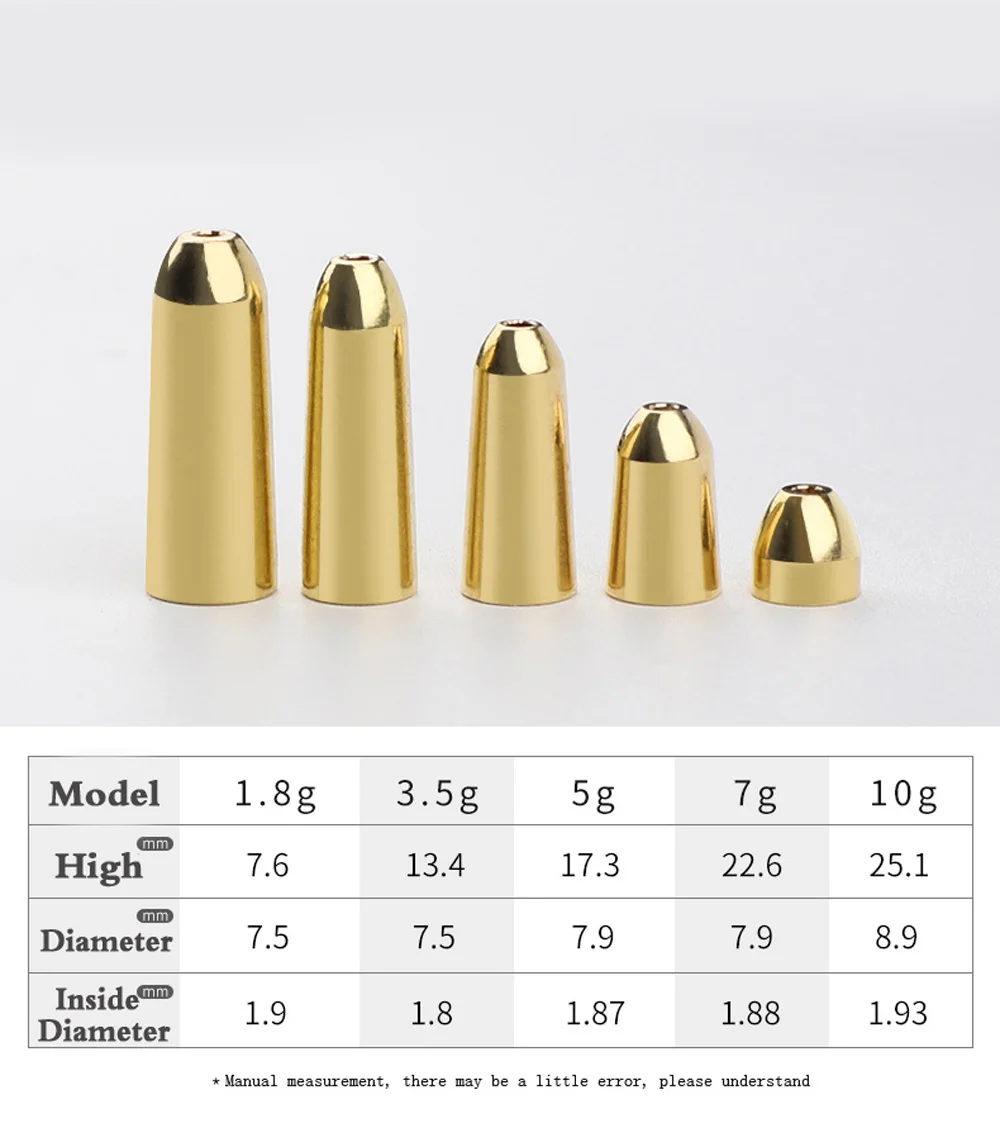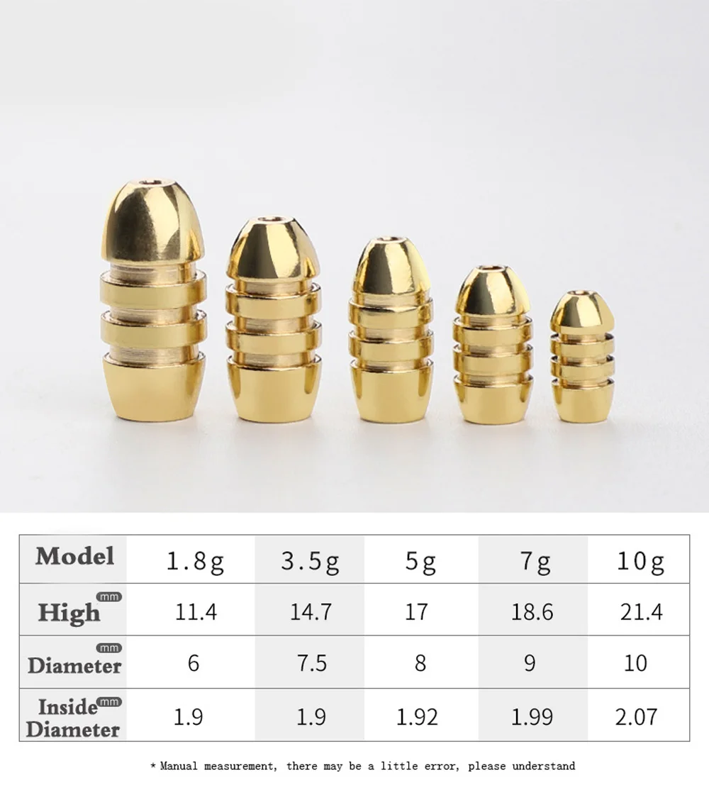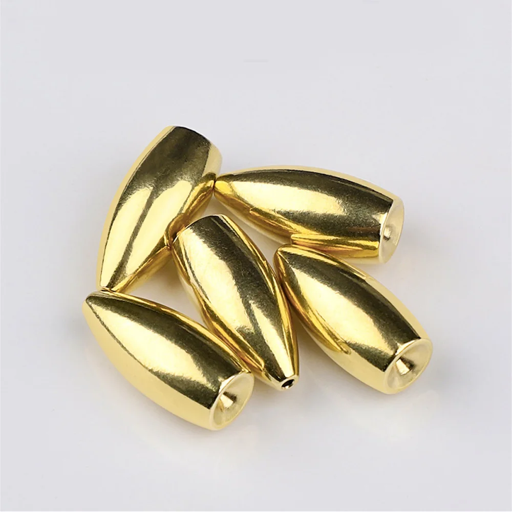 Plomo de pesca de peso de latón, accesorios de aparejos, plomo de cobre puro hacia abajo, pesas de rig de bala, cono de señuelo, línea hueca, 10 Uds.