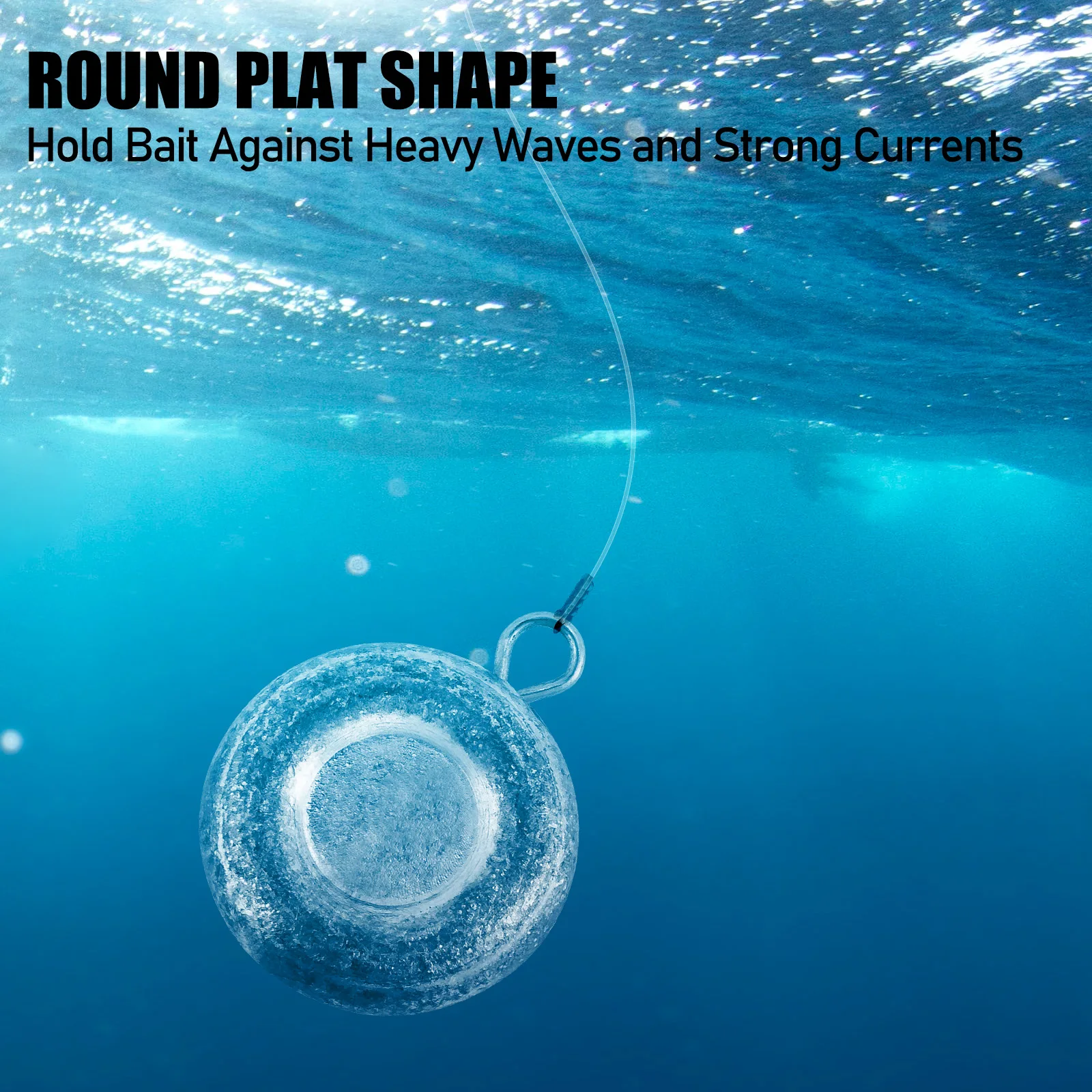 El diseño redondo plano permanecerá en la parte inferior y ayudará a sujetar el cebo contra ondas y corrientes fuertes.