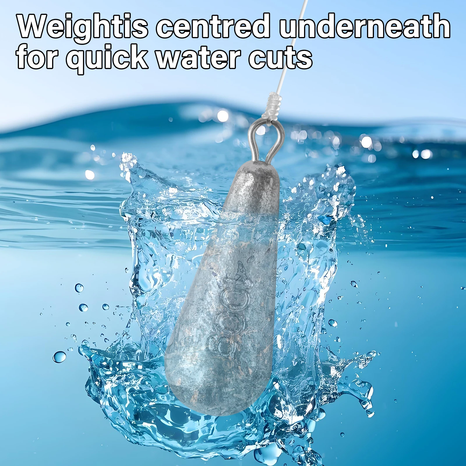 El cuerpo en forma de pera garantiza un posicionamiento más central del peso del péndulo, permitiendo una rápida inmersión en el agua y una excelente sensación de lanzamiento.