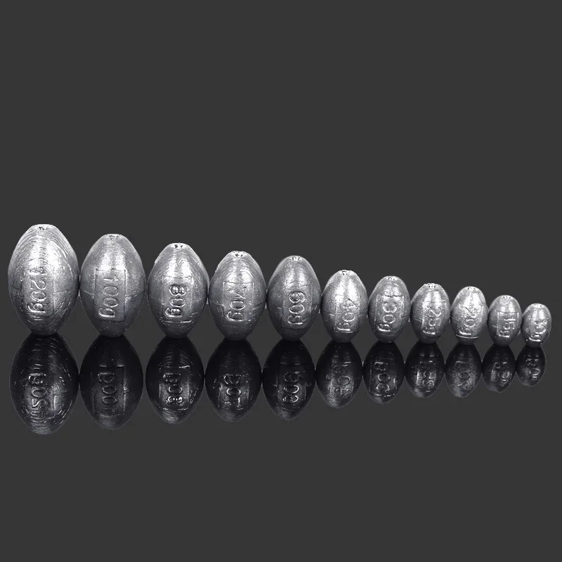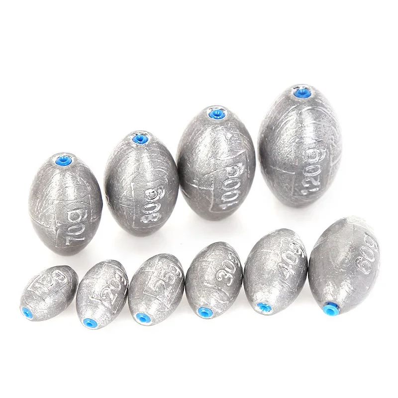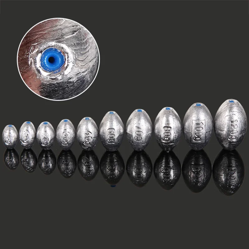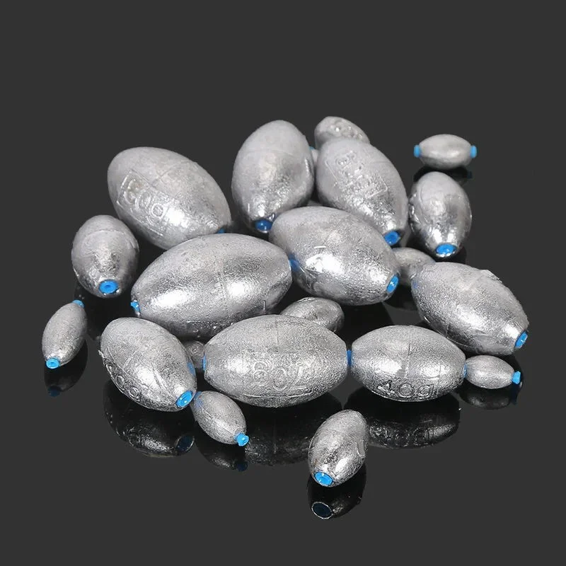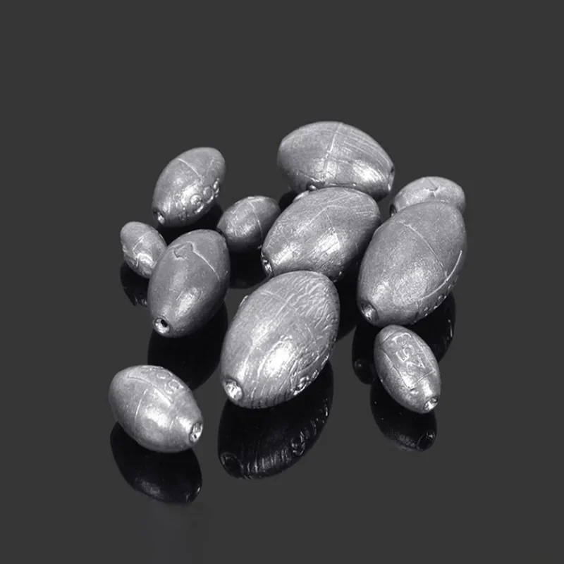 Plomo de peso de pesca con forma de oliva, plomos de aparejo, pesas de pesca, fregadero de tiro dividido con accesorios de herramientas de aparejos de escala