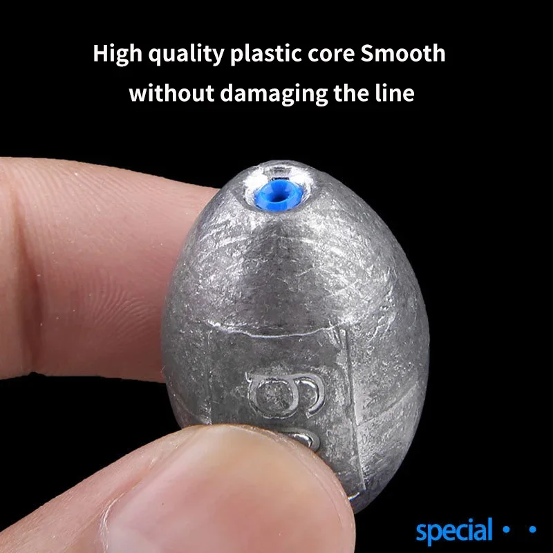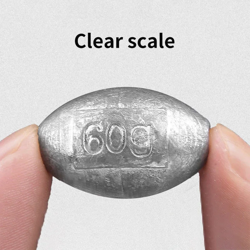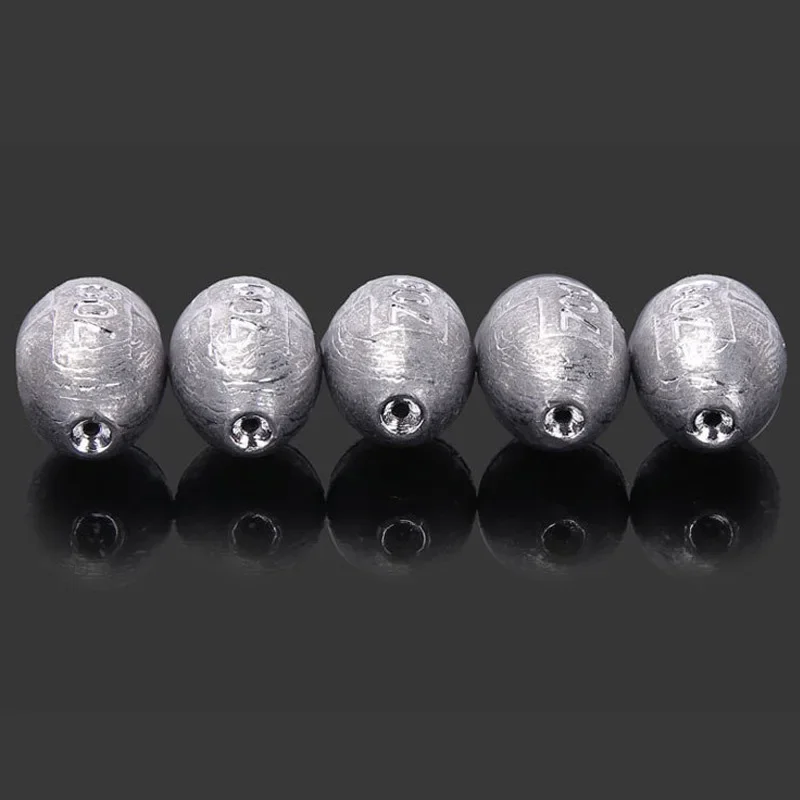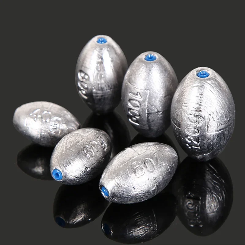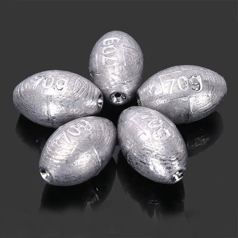 Plomo de peso de pesca con forma de oliva, plomos de aparejo, pesas de pesca, fregadero de tiro dividido con accesorios de herramientas de aparejos de escala