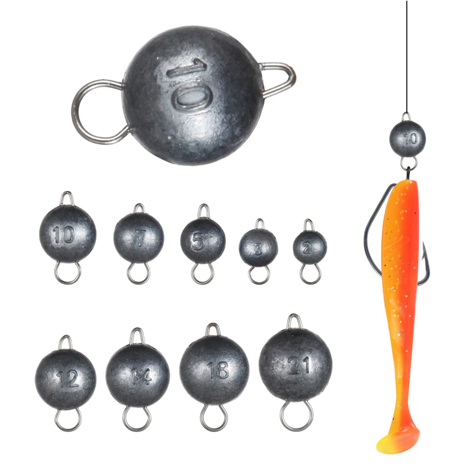 Plomos de pesca de 5 piezas, 2g-18g, cabeza plomada de agua profunda, peso de bala con bola redonda giratoria, accesorios de aparejos de pesca