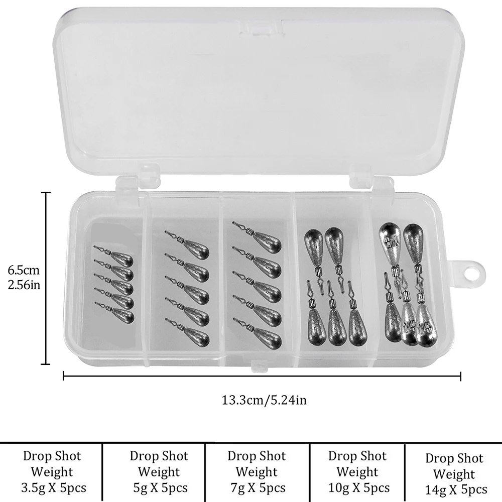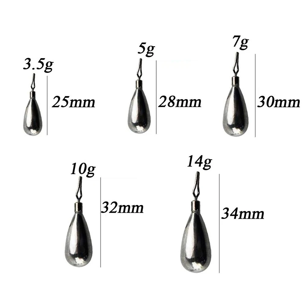 25 unids/caja barra/forma de lágrima Drop Shot pesca plomo 3,5G 5G 7G 10g 14g peso de bala carpa lubina accesorios de Pesca aparejos de Pesca