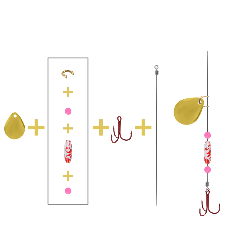 COLORES ATRACTIVOS: los cuerpos de señuelo de latón y las cuentas de ojo de pez tienen diferentes colores, la superficie colorida puede aumentar el atractivo de sus hilanderos para la pesca de agua salada y dulce, ¡satisface sus diferentes necesidades de pesca!