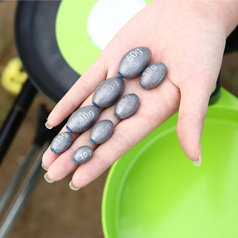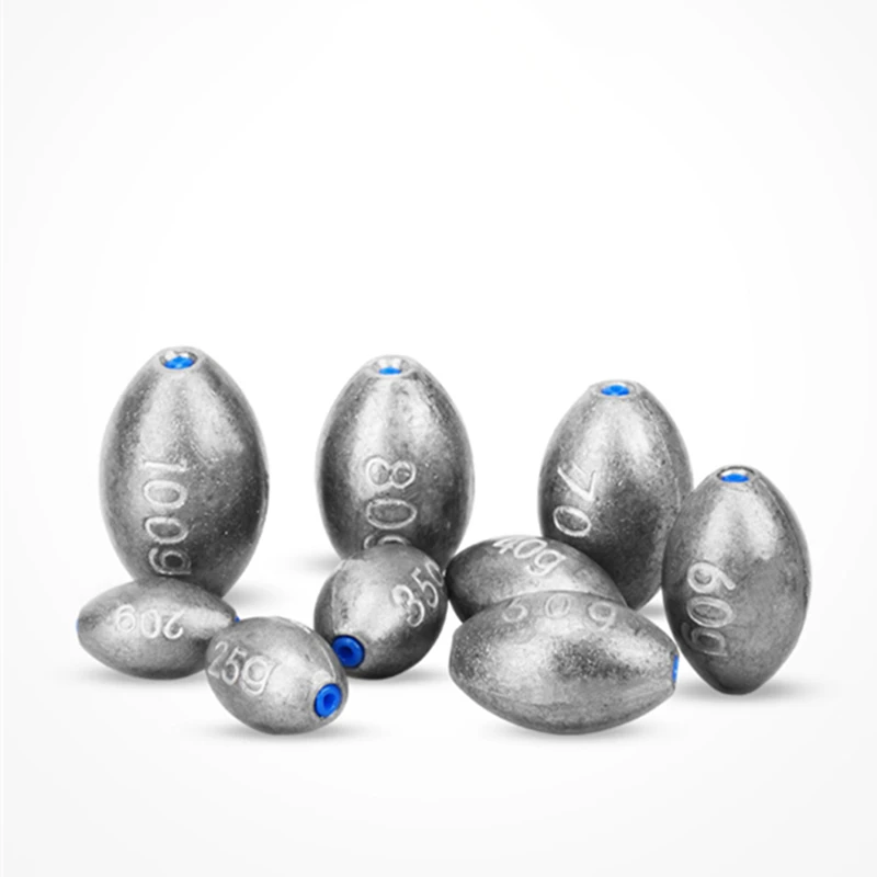 Plomada de pesca en forma de aceituna colgante de plomo electrolítico de alta densidad