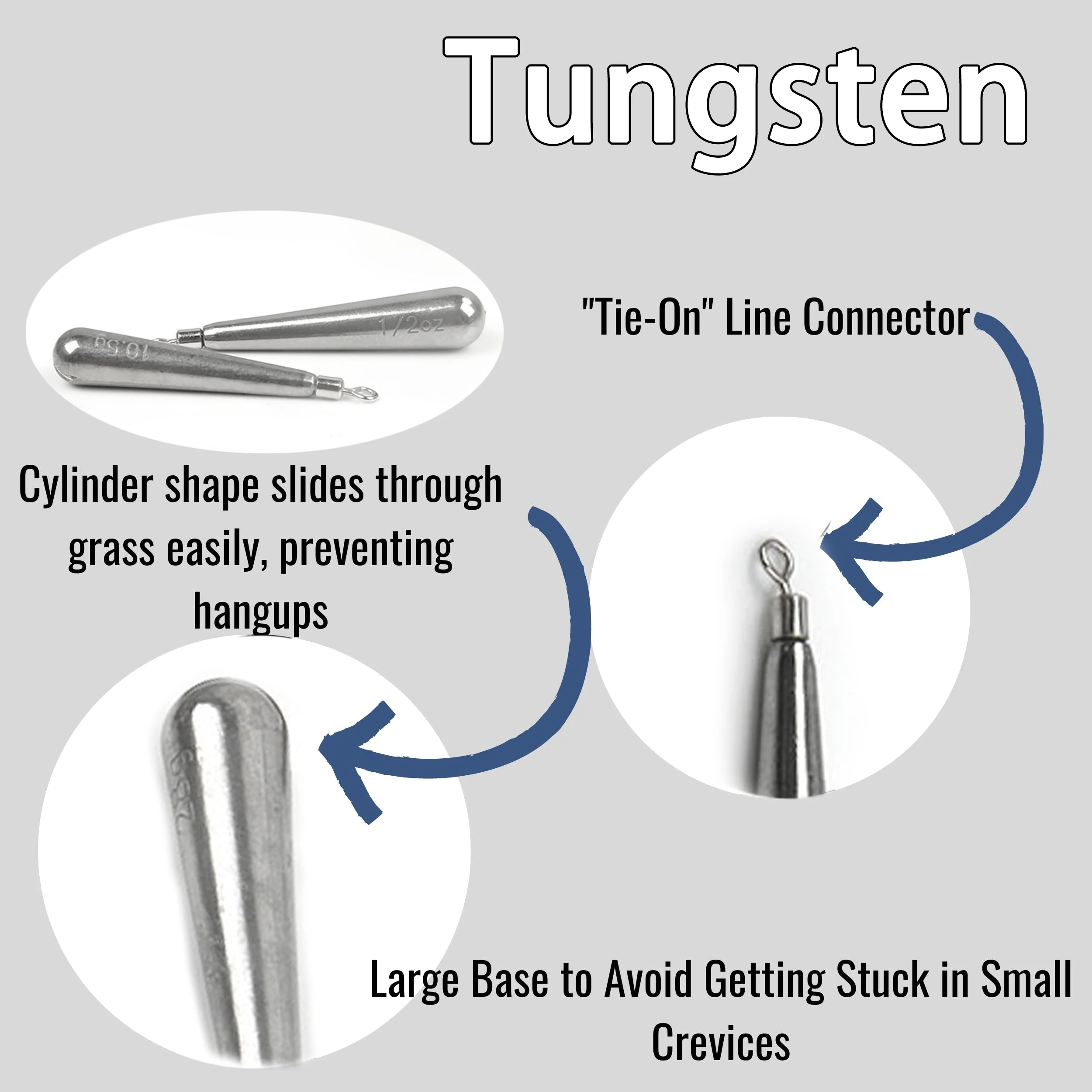 TUNGSTEN: es mucho más pequeño que el plomo, lo que significa menos colgados, menos enganches/malezas para ayudar a conseguir más peces en el barco.