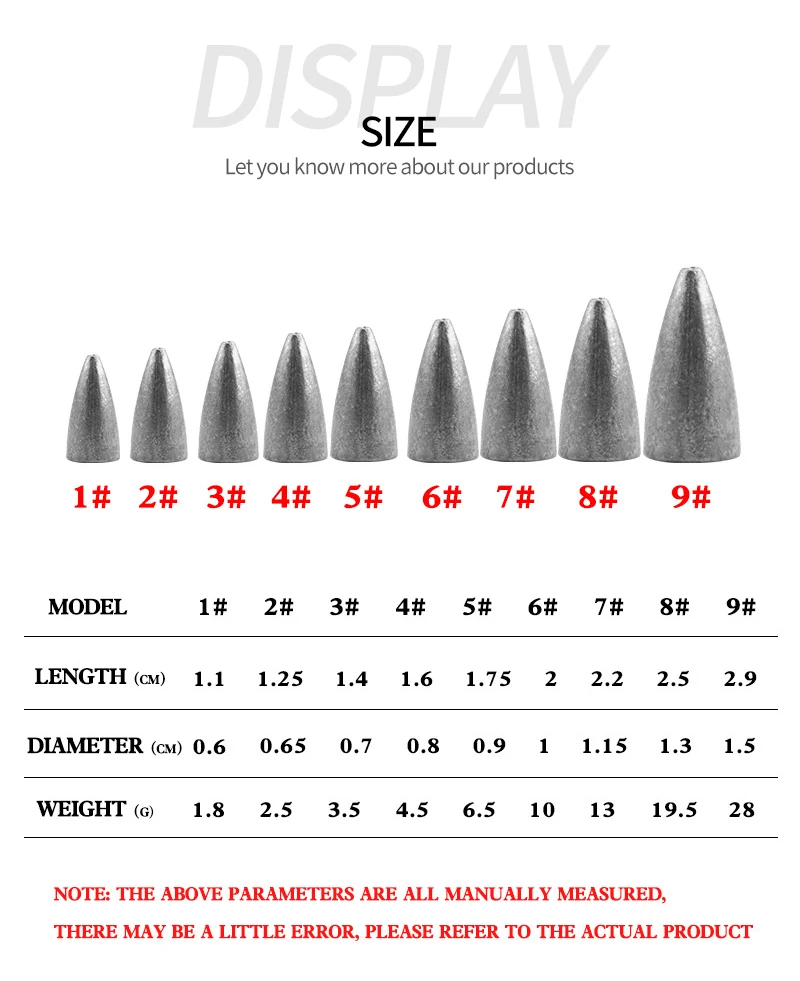 Plomos de plomo en forma de bala, 5 piezas, 1,8g, 2,5g, 3,5g, 4,5g, 6,5g, 10g, accesorios de aparejos de pesca de fundición