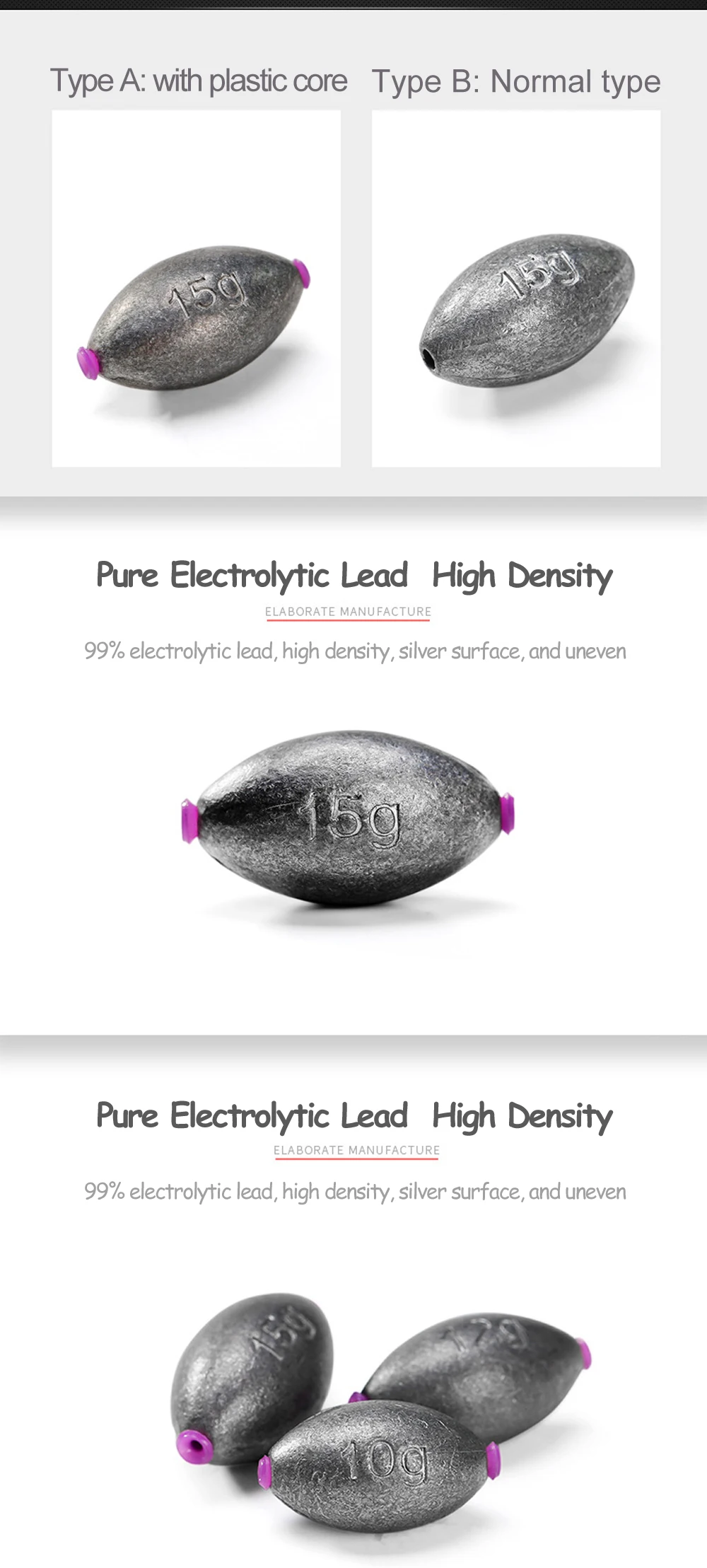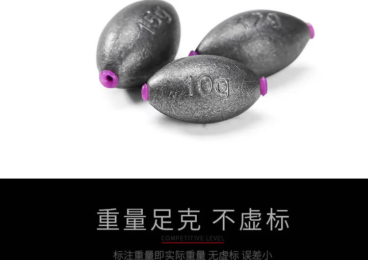 Plomos de plomo puro en forma de oliva para pesca de lubina en agua salada, plomos de plástico con núcleo, 10 piezas, aparejos de pesca de carpa, varios tamaños