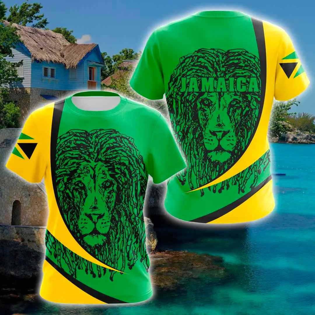 PLstar Cosmos Jamaica escudo de armas redondo León 3D impreso camiseta de moda para hombres estilo de verano Unisex Casual camiseta de calle TX290