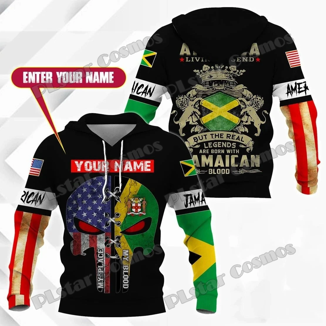 PLstar Cosmos nombre personalizado jamaica escudo de armas 3D impreso hombres sudaderas con capucha Unisex Casual ropa de calle otoño Sudadera con capucha QDY24