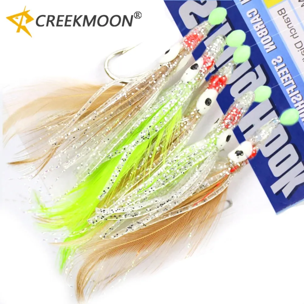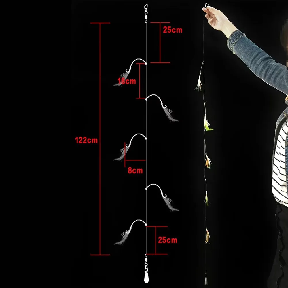 【Brilla en la oscuridad】:Las cuentas de pesca luminosas y la pluma de caballa intermitente brillan en la oscuridad, son más atractivas para su objetivo mientras pesca.