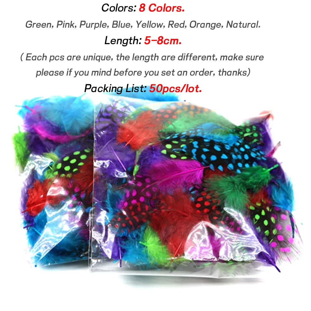 50 Uds. De plumas de gallina de perlas de Guinea teñidas con puntos, moscas Spey, mejillas de cola, serpentinas suaves, Hackle, Material de plumas para atar moscas secas y húmedas