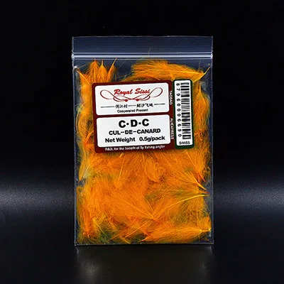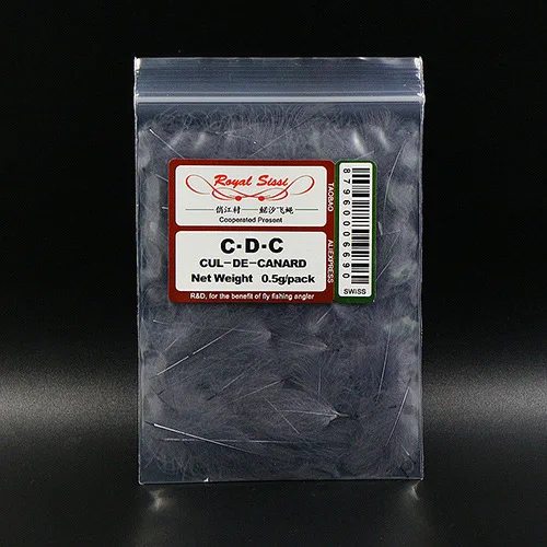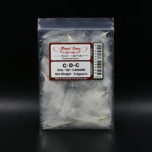 Especificaciones: Las plumas CDC se utilizan ampliamente como paquetes para postes de ala para moscas de paracaídas, o atadas horizontales para alas de caddis, o en bucle para alas emergentes. CDC también es excelente cuando se corta el viento tanto para moscas secas como húmedas.