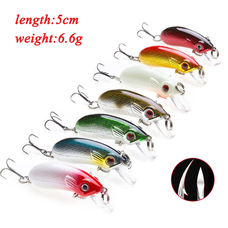 Tip: If you do not receive the goods, the goods are missing, damaged, please contact the seller in time!Product Description1.crankbaits baits have 7 colors are available to meet the needs of different fishing places.2.2pcs hooks on the tail to increase the temptation to fish.3.The Sinking speed is 6 s/m, the artificial bait sinking slowly, and can search for target fish in different water layers.4.The surface of the fish scale makes the bait more realistic.Length :50mmWeight : 6.6gColor : 7 ColorsSinking Speed : 6 s/mFloating or Sinking : Slow Sinking Crank BaitType : crankbaits fishing lureTargeted fish:sea bass trout perch zander crappie etc.